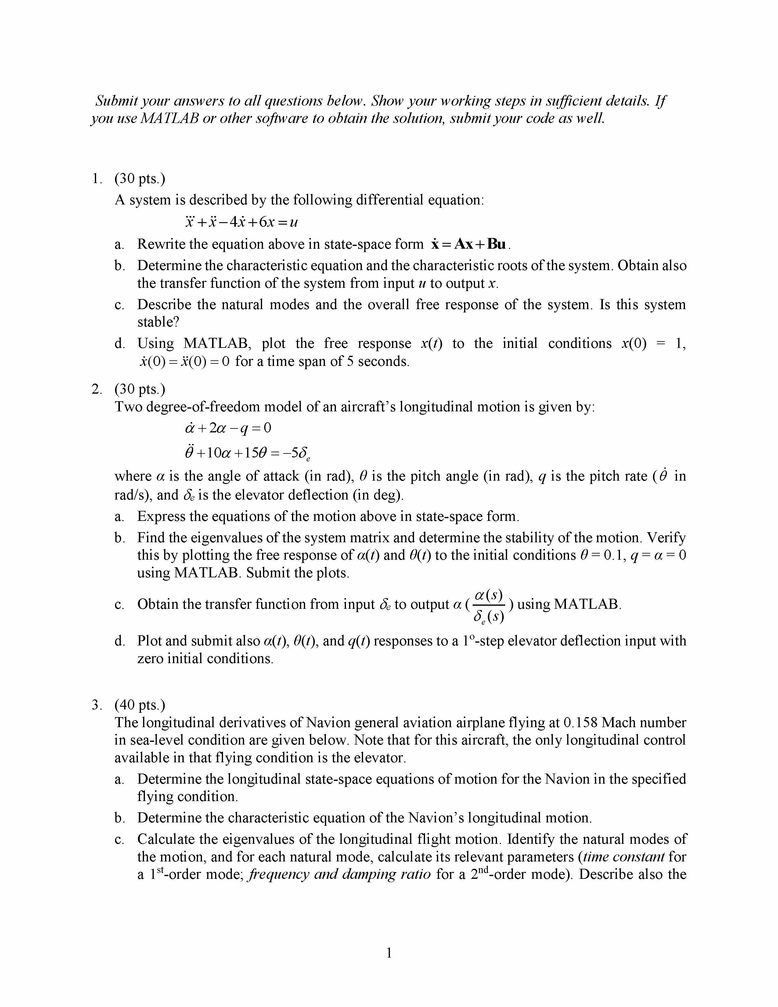 1. (30 pts.) A system is described by the following differential e...