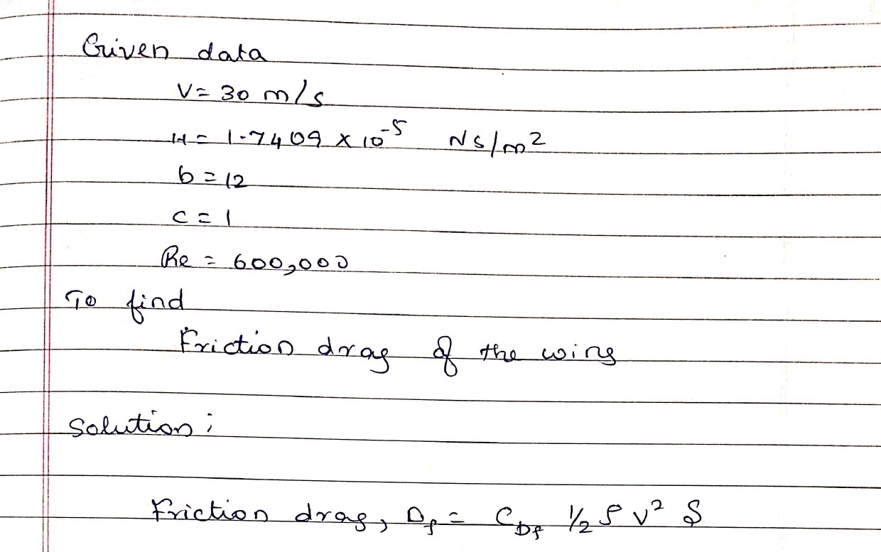 Consider this image of a rectangular wing flying at speed V = 30 m ...