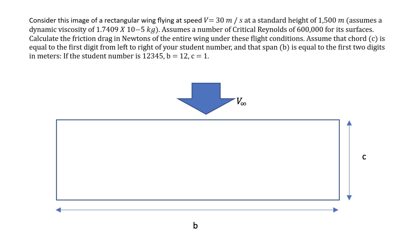 Consider this image of a rectangular wing flying at speed V = 30 m...