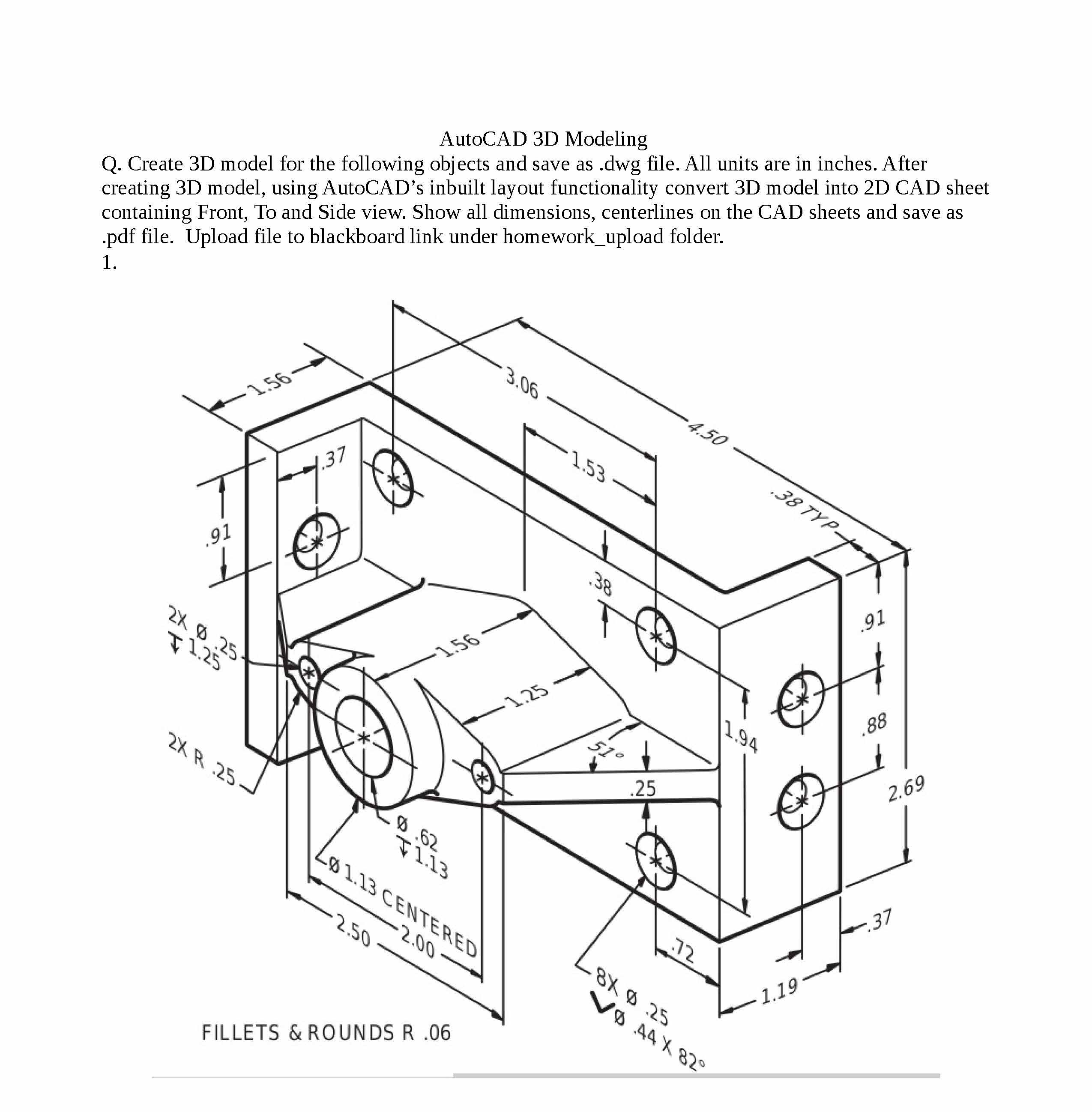 AutoCAD 3D Modeling Q. Create 3D model for the following objects a...