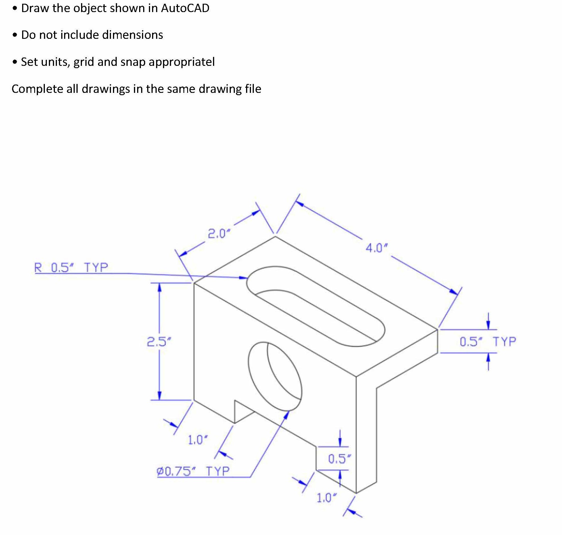 Draw the object shown in AutoCAD Do not include dimensions Set un...