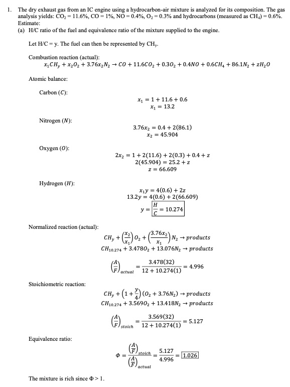 1. The dry exhaust gas from an IC engine using a hydrocarbon-air m...