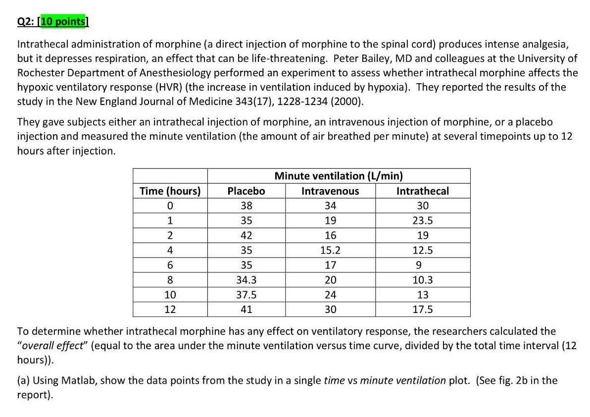 Q2: 10 points Intrathecal administration of morphine (a direct inj...