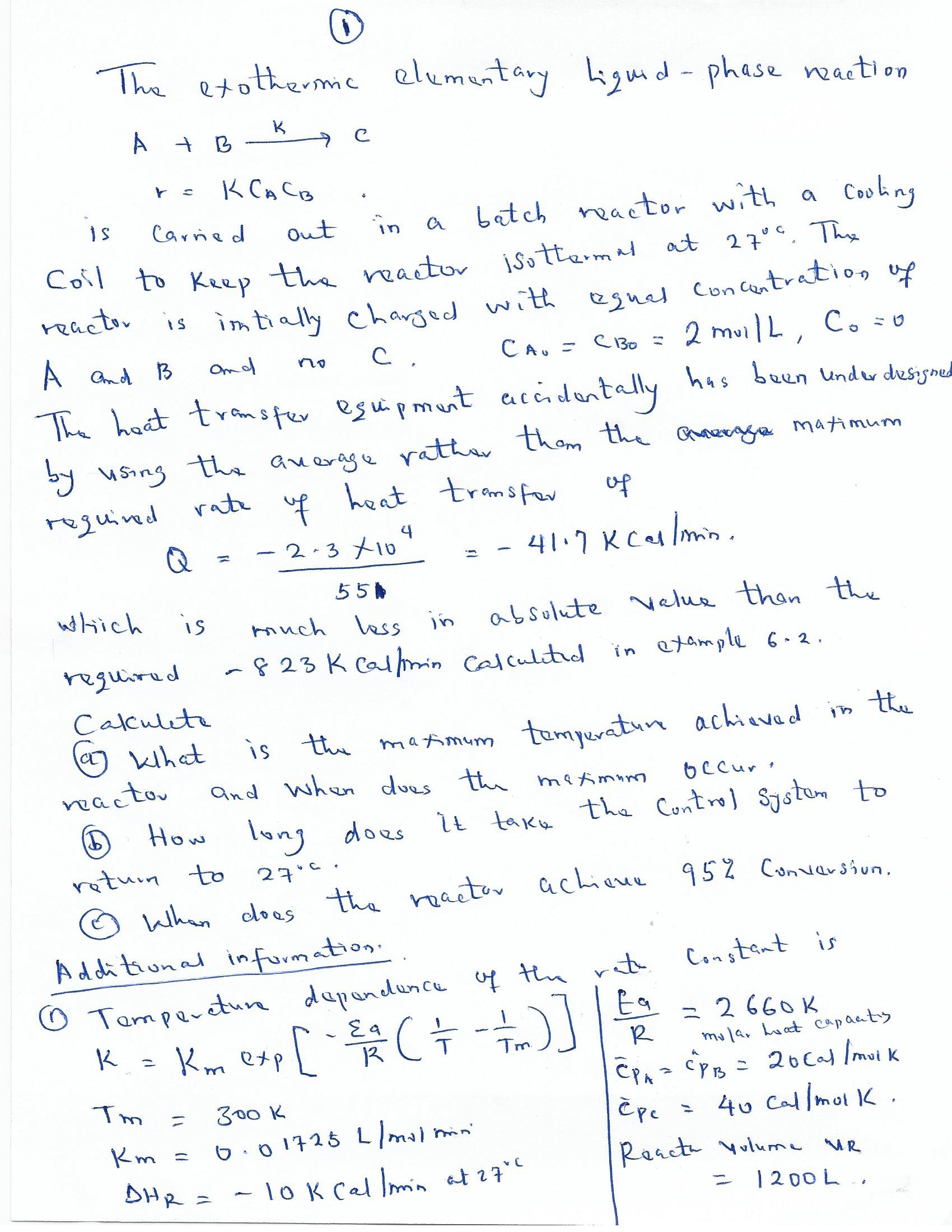 1 The exothermic elementary Liquid-phase reaction K A B C +...