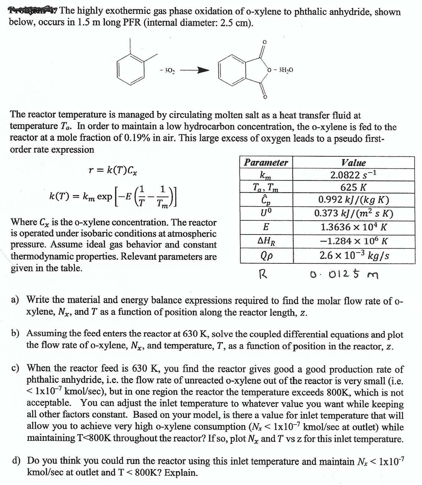 The highly exothermic gas phase oxidation of o-xylene to phthalic a...