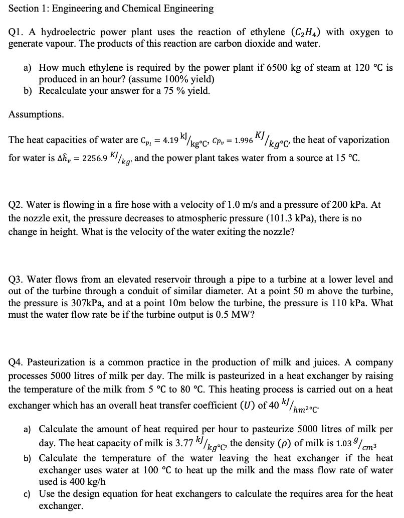 Section 1: Engineering and Chemical Engineering Q1. A hydroelectri...