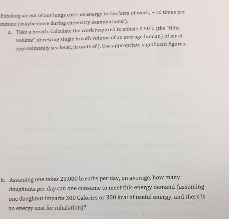 Exhaling air out of our lungs costs us energy in the form of work, ...