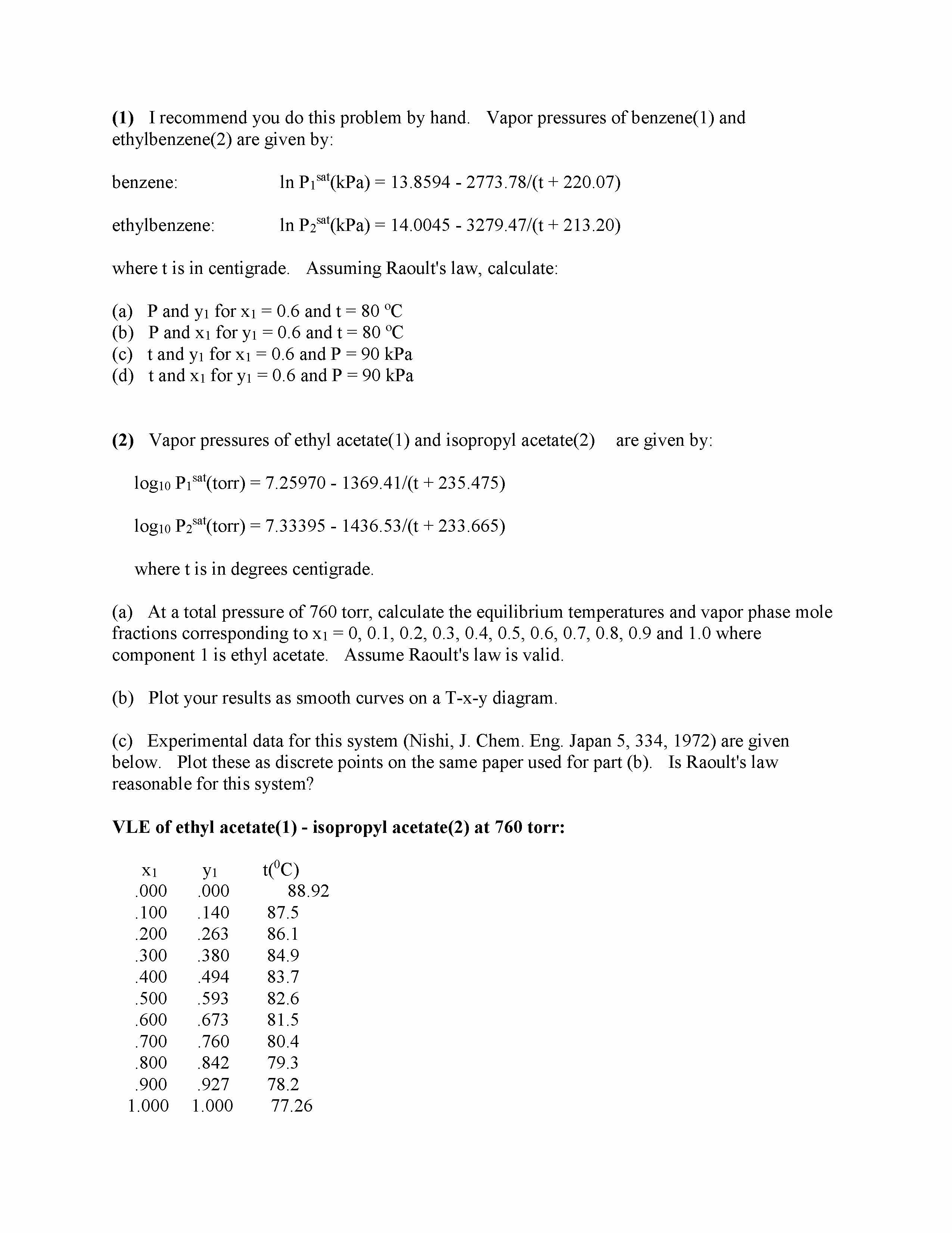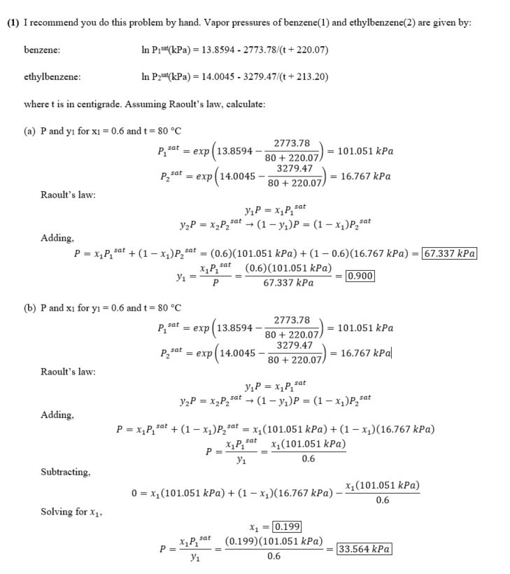 (1) I recommend you do this problem by hand. Vapor pressures of ben...
