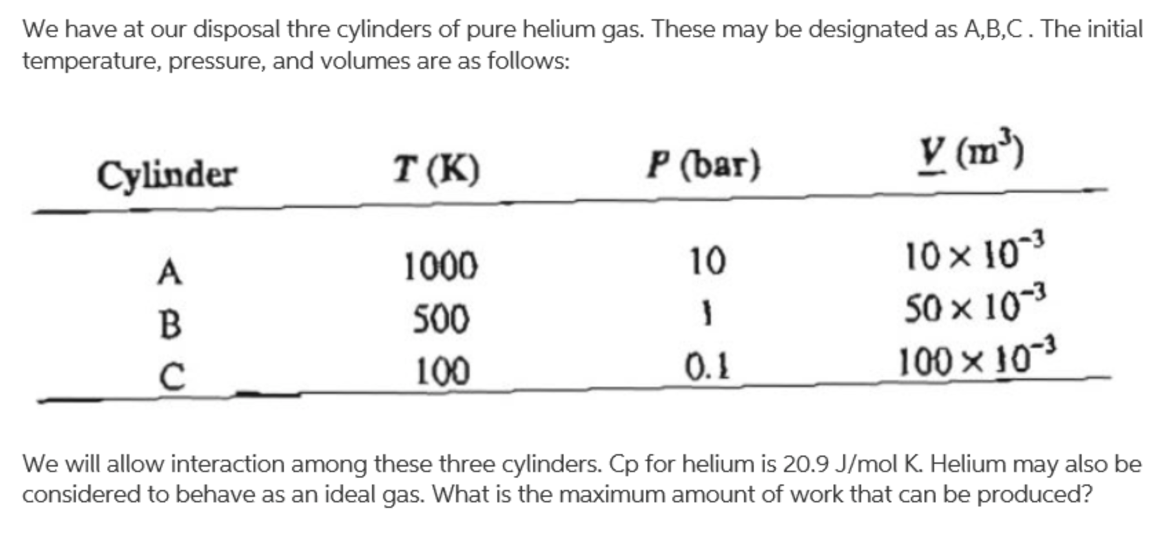 We have at our disposal thre cylinders of pure helium gas. These ma...