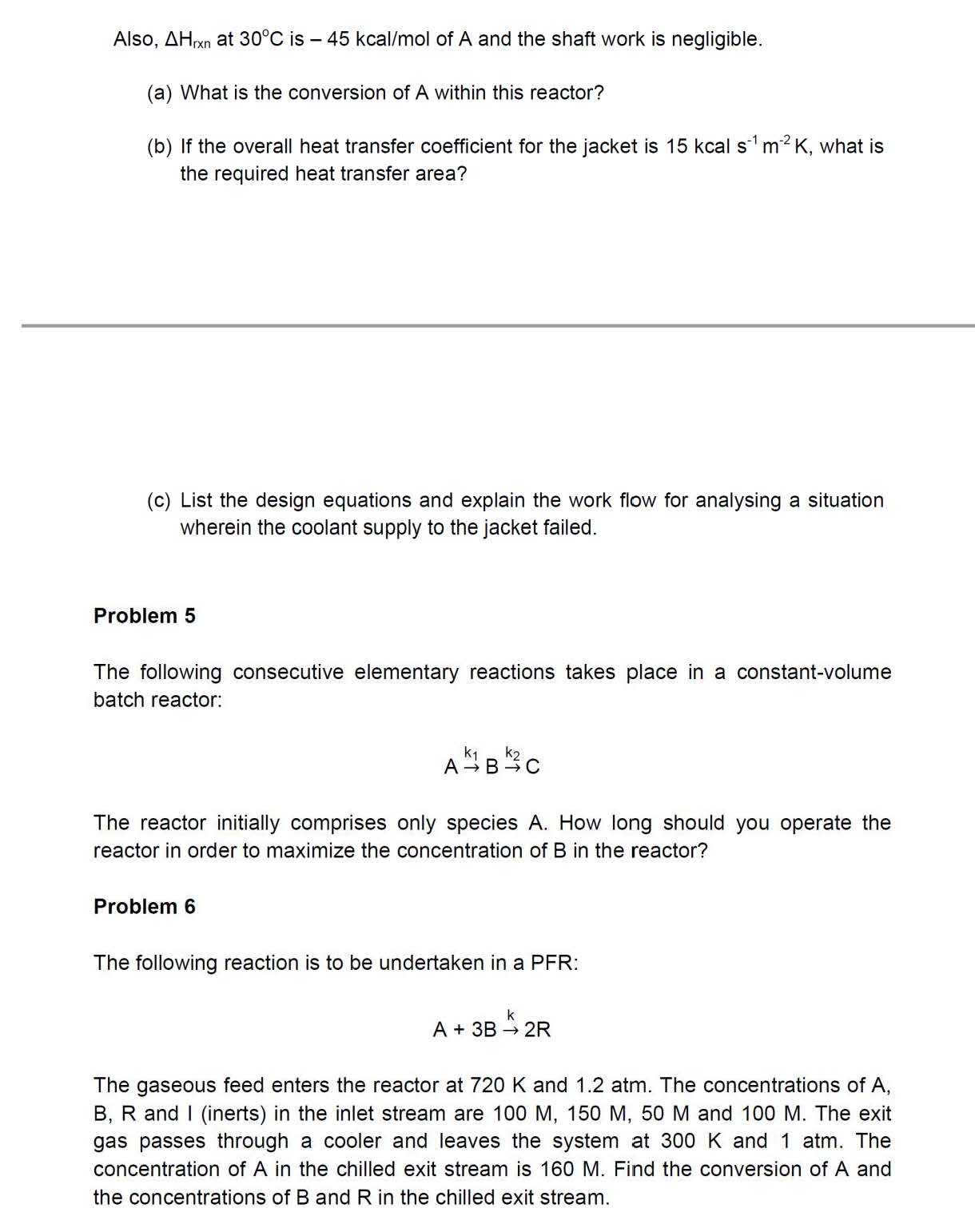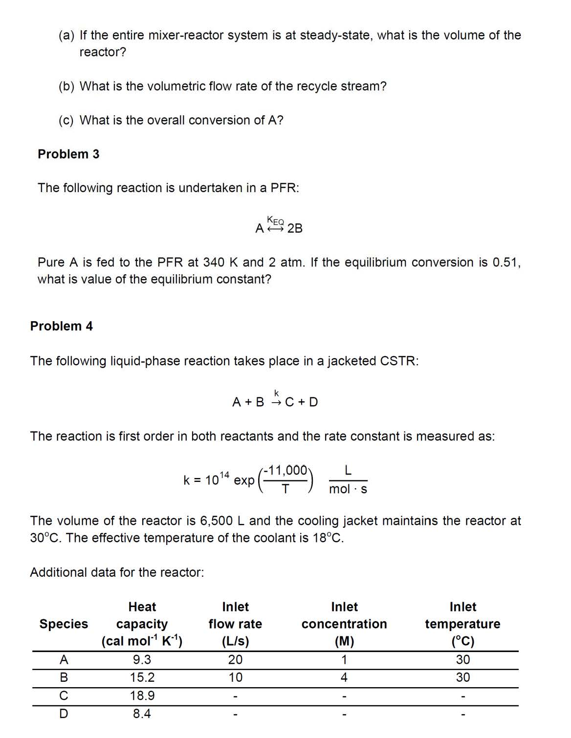 Problem 1 Pure A is fed to an isothermal PBR at a rate of 10 mol/m...