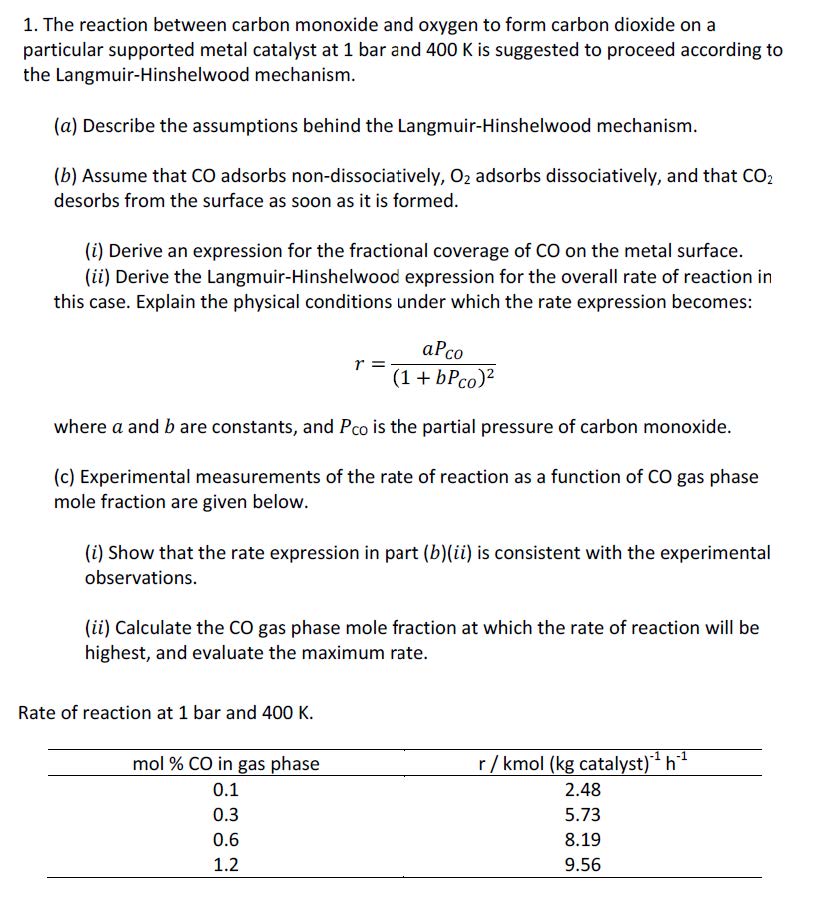1. The reaction between carbon monoxide and oxygen to form carbon d...