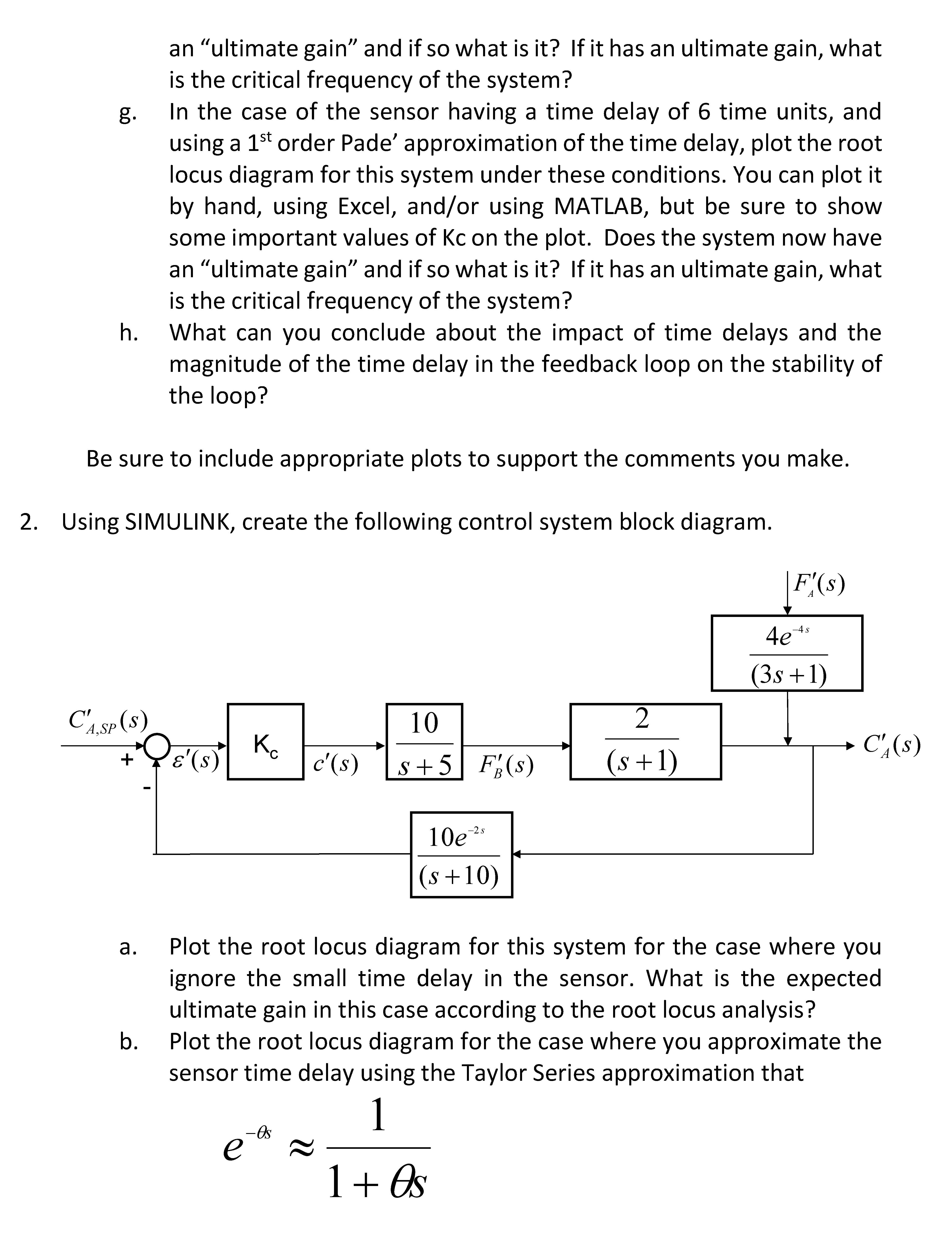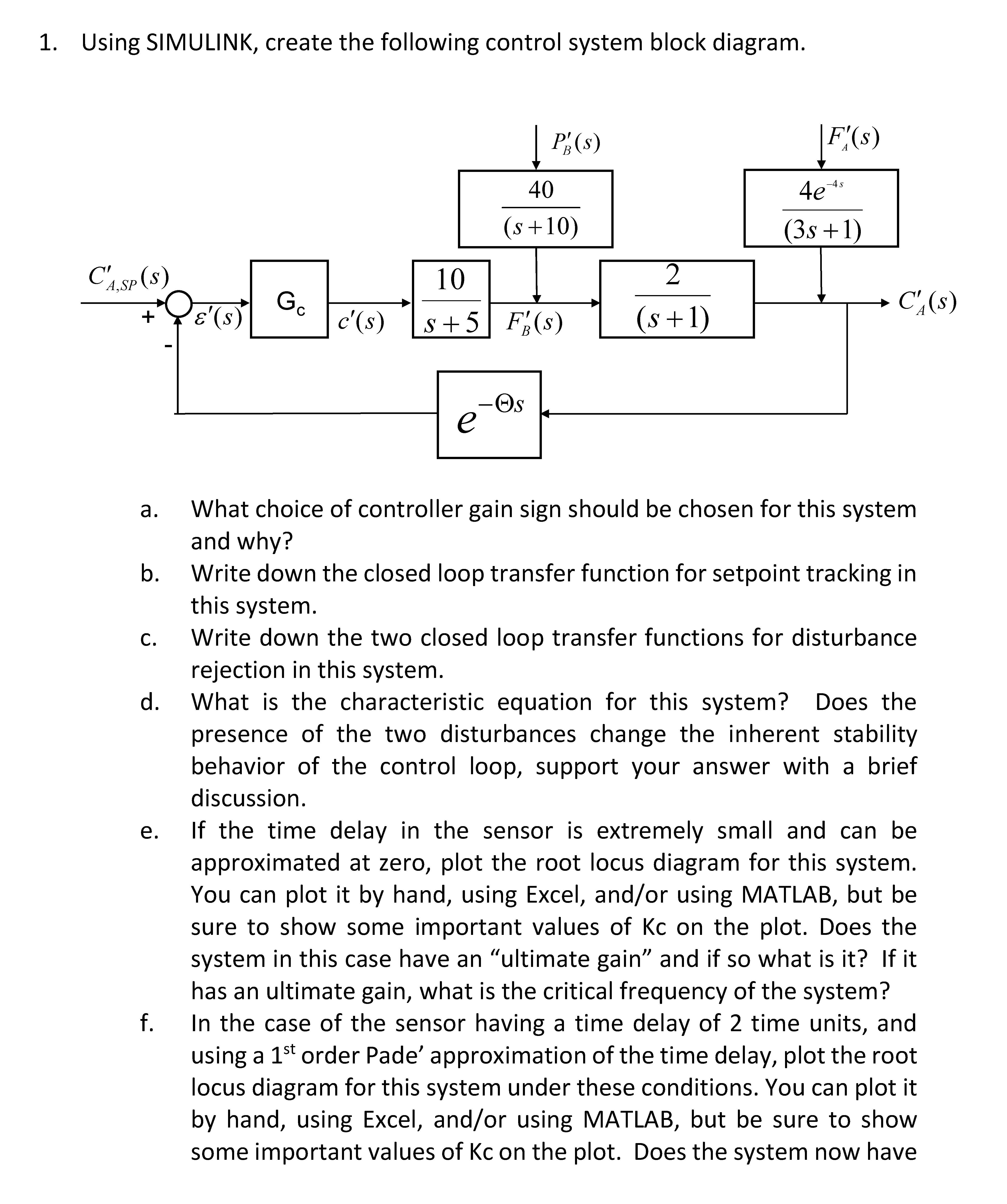 1. Using SIMULINK, create the following control system block diagra...