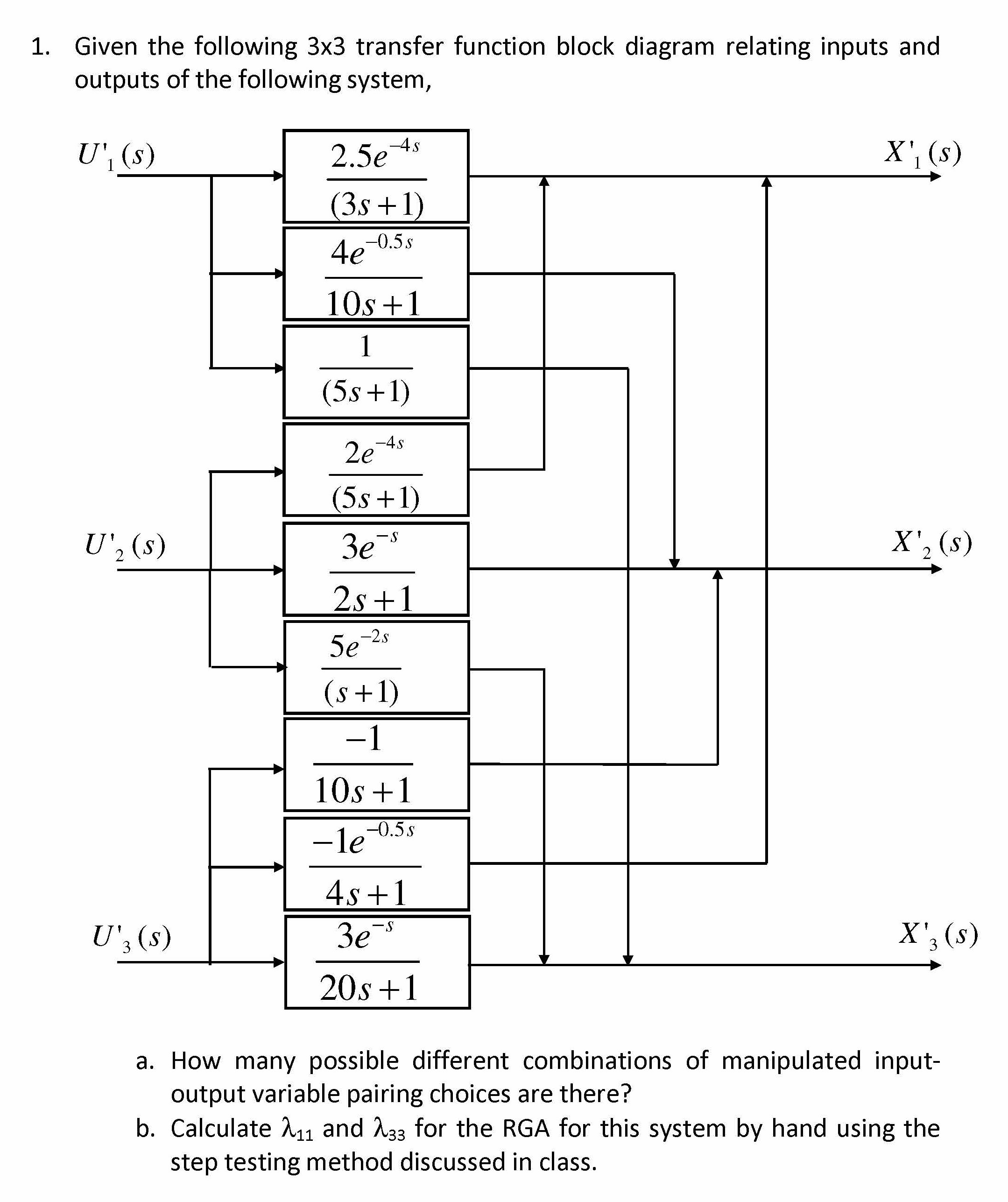 1. Given the following 3x3 transfer function block diagram relating...