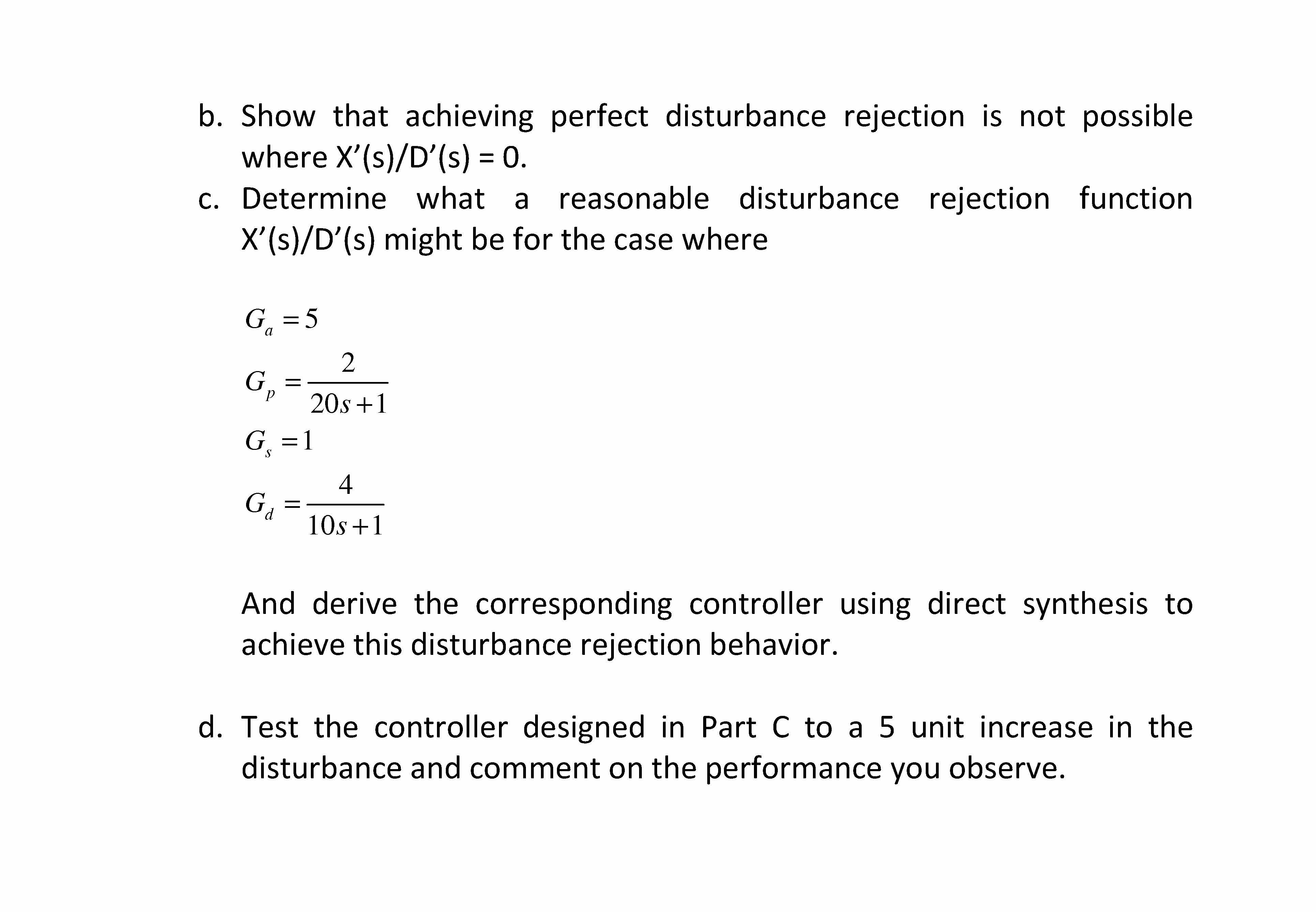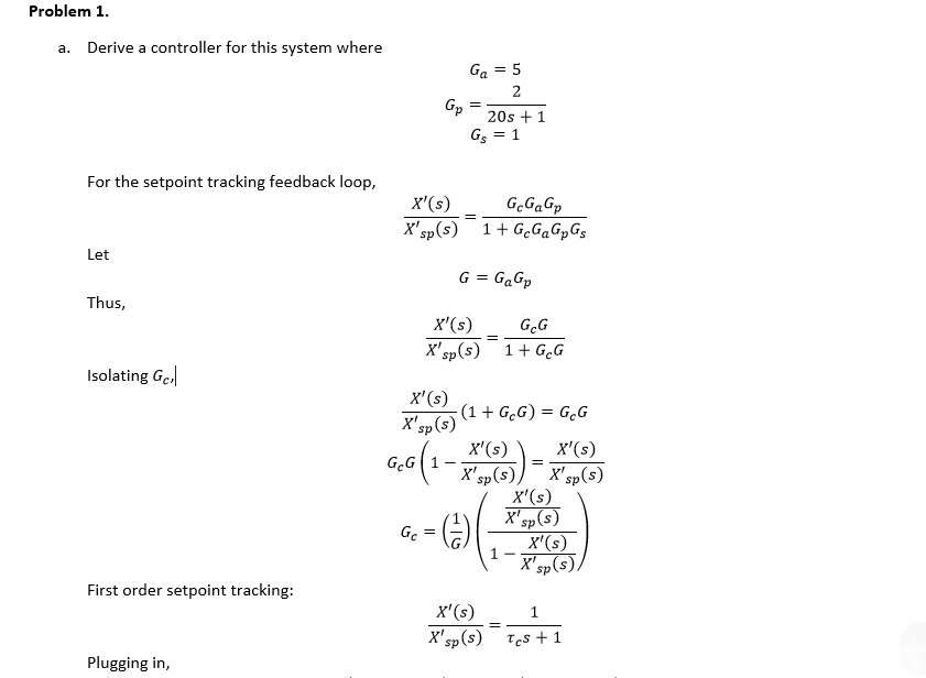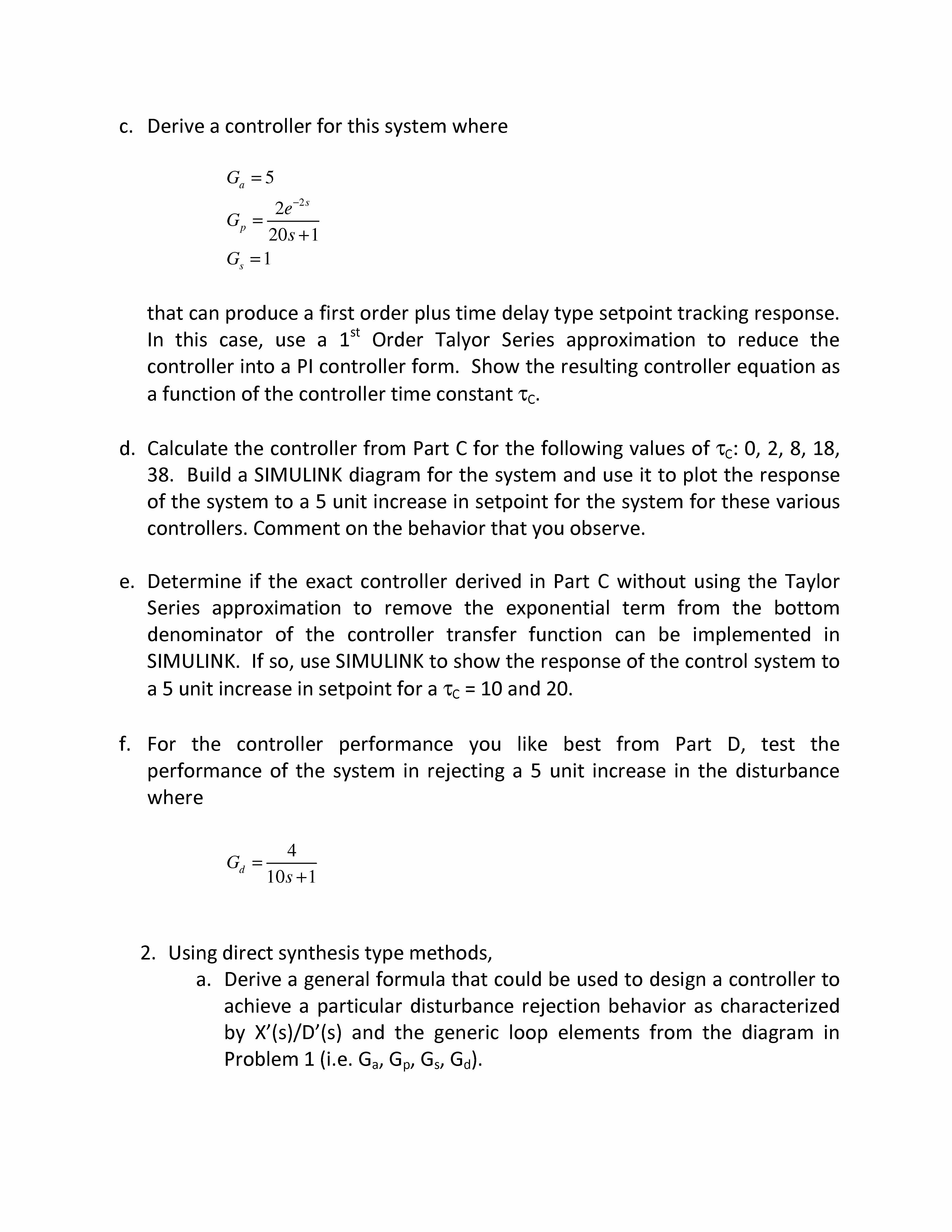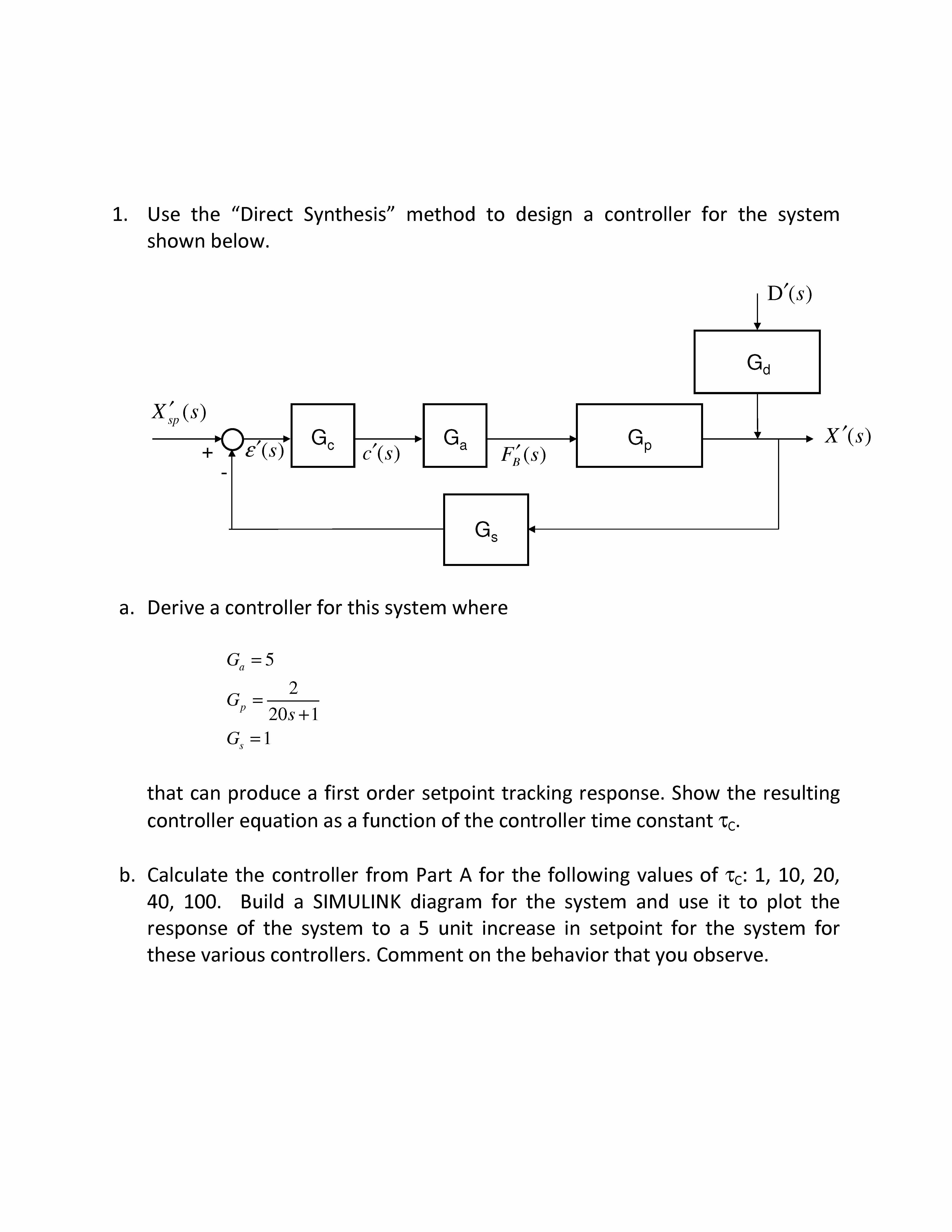 1. Use the "Direct Synthesis" method to design a controll...