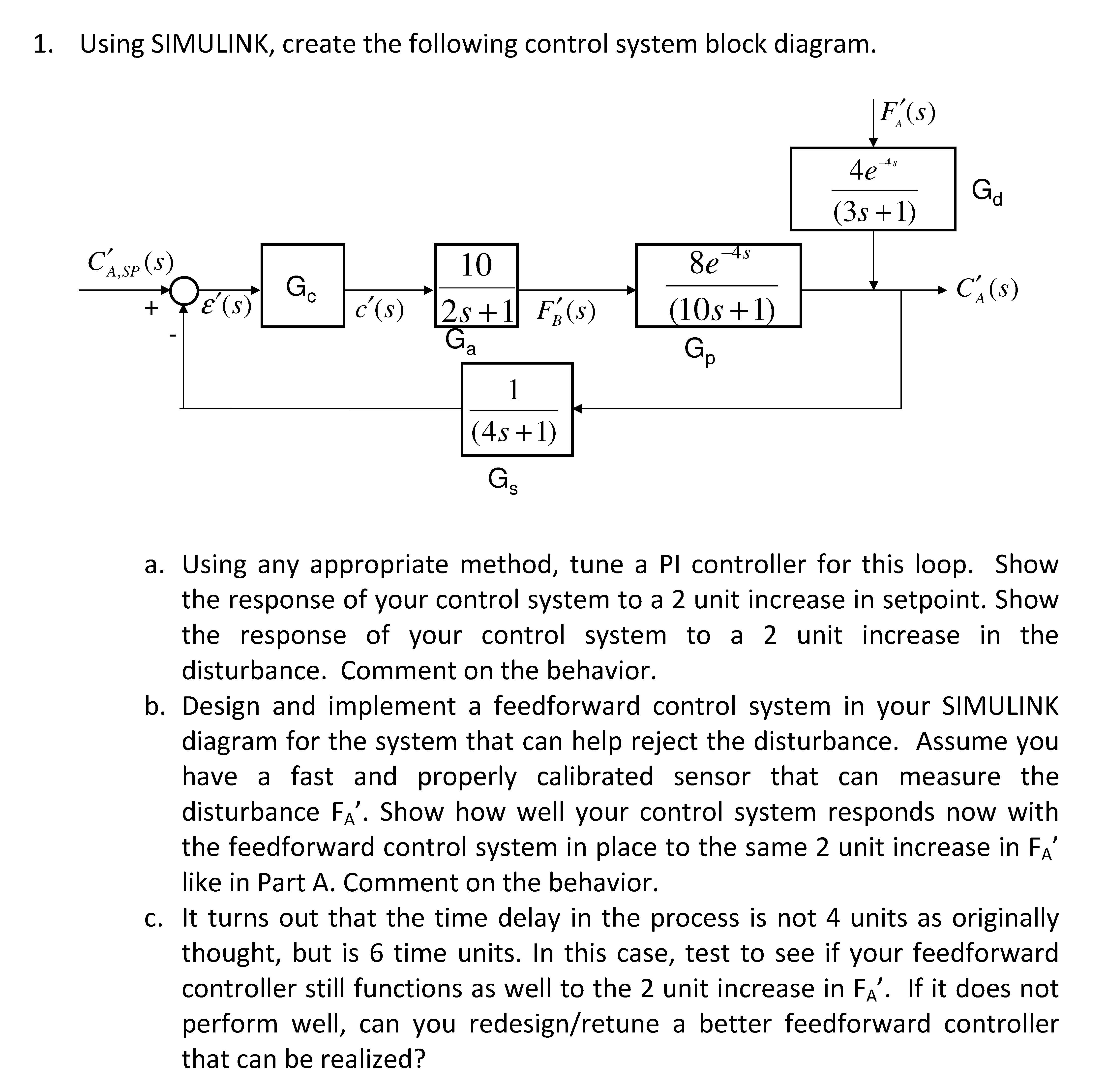 1. Using SIMULINK, create the following control system block diagra...