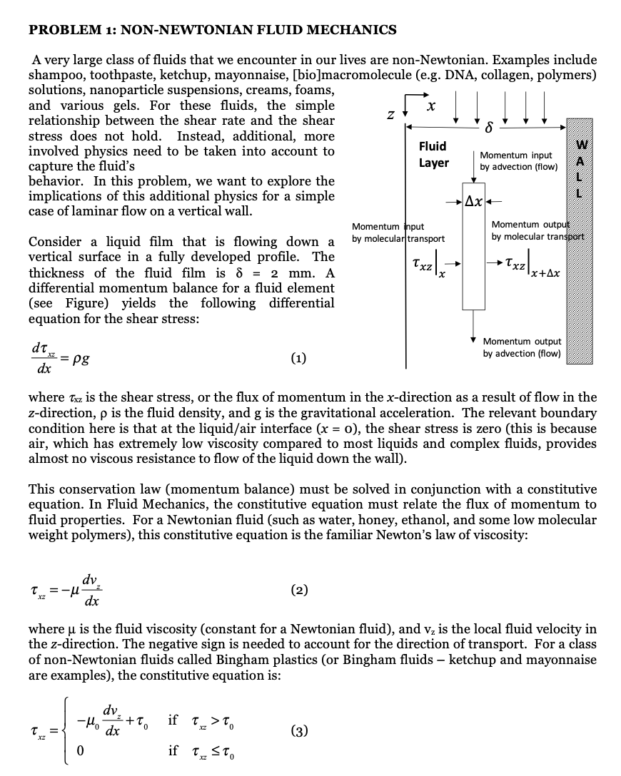 PROBLEM 1: NON-NEWTONIAN FLUID MECHANICS A very large class of flu...