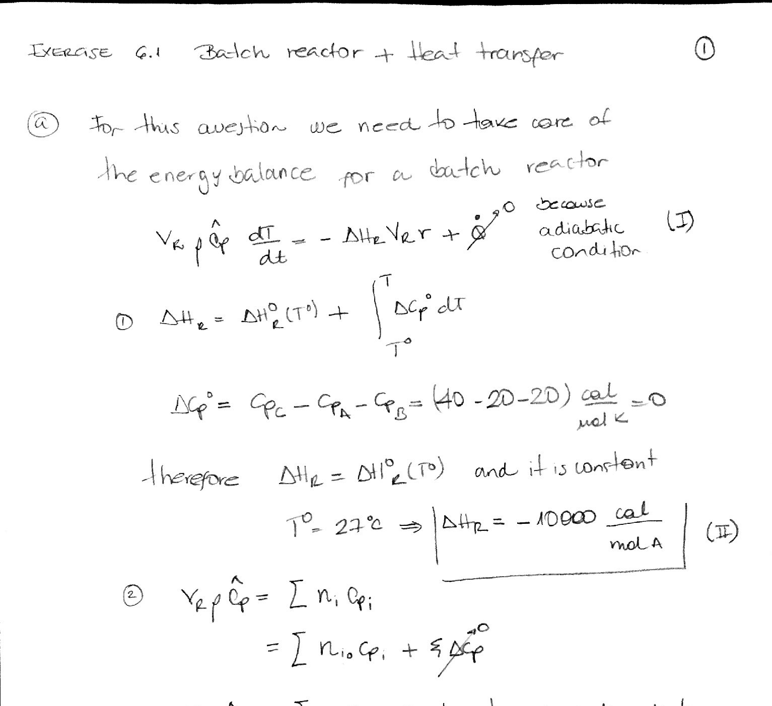 Exercise 6.1: Batch energy balance with heat transfer Consider Exa...