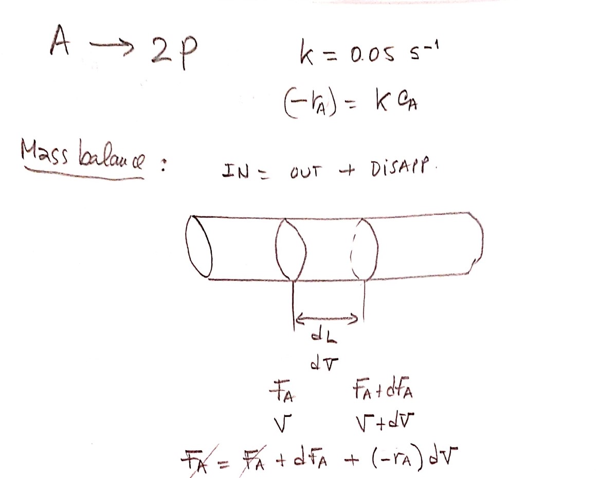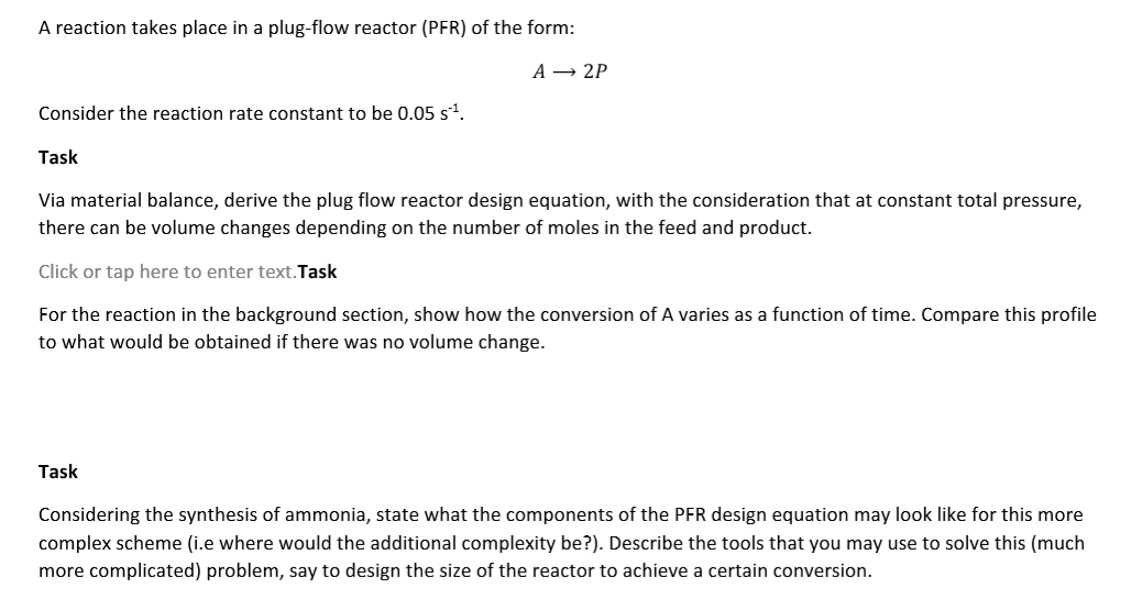 A reaction takes place in a plug-flow reactor (PFR) of the form: A...