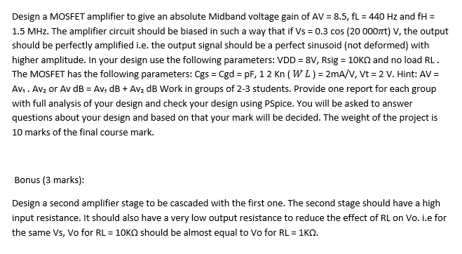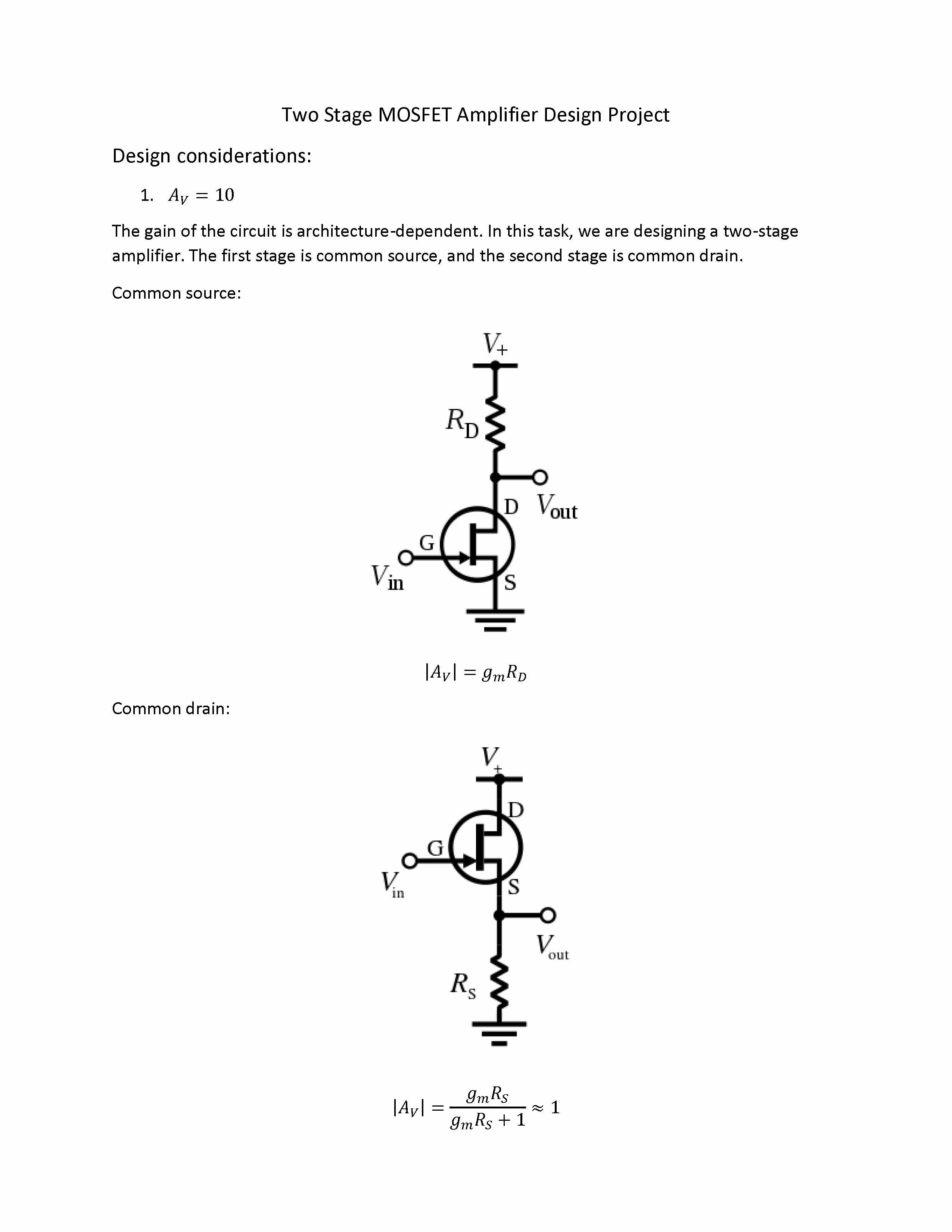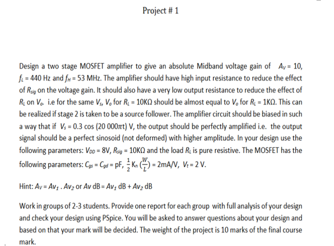 Project # 1 Design a two stage MOSFET amplifier to give an absolut...