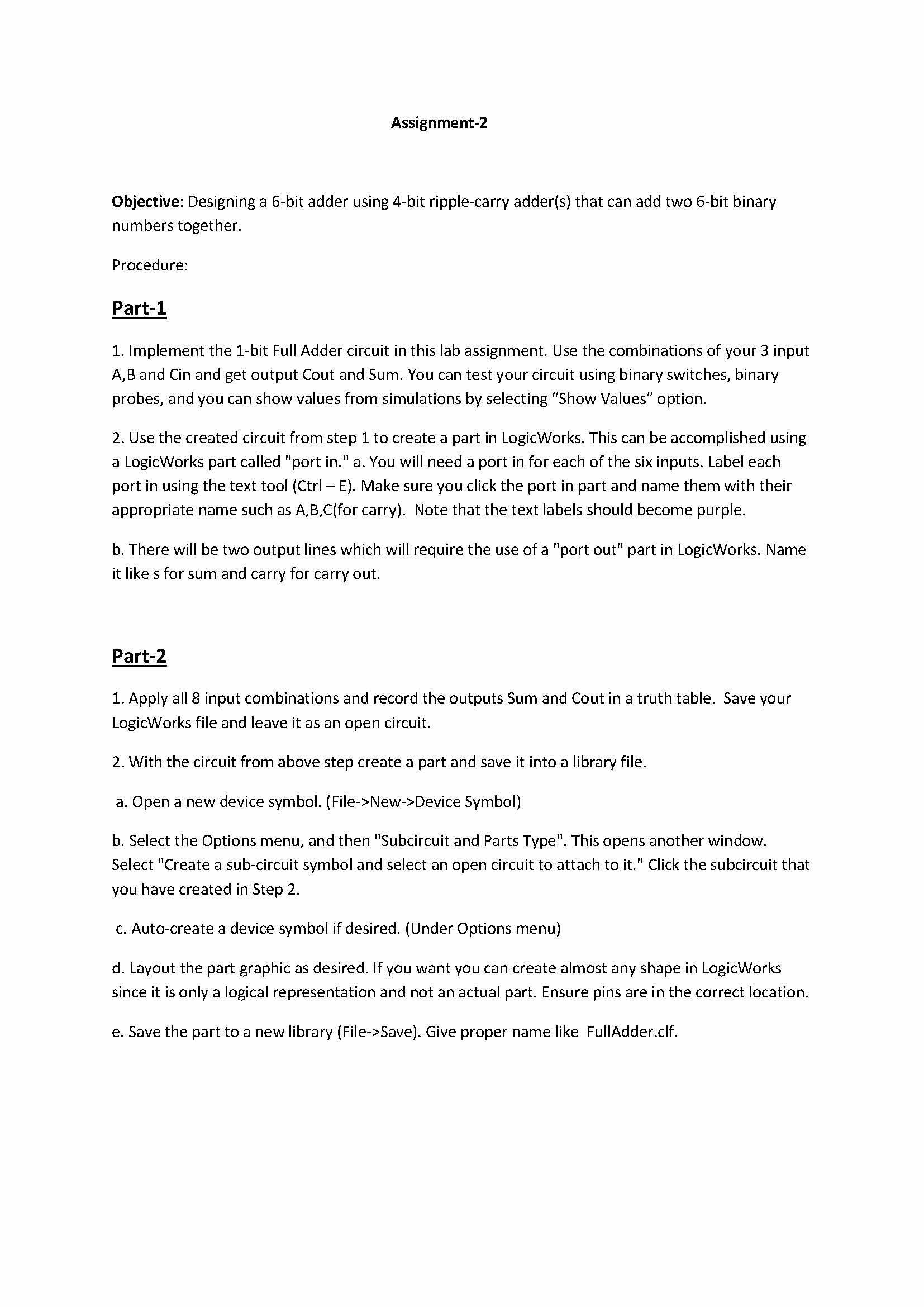 Assignment -2 Objective: Designing a6 -bit adder using -bit ripple...