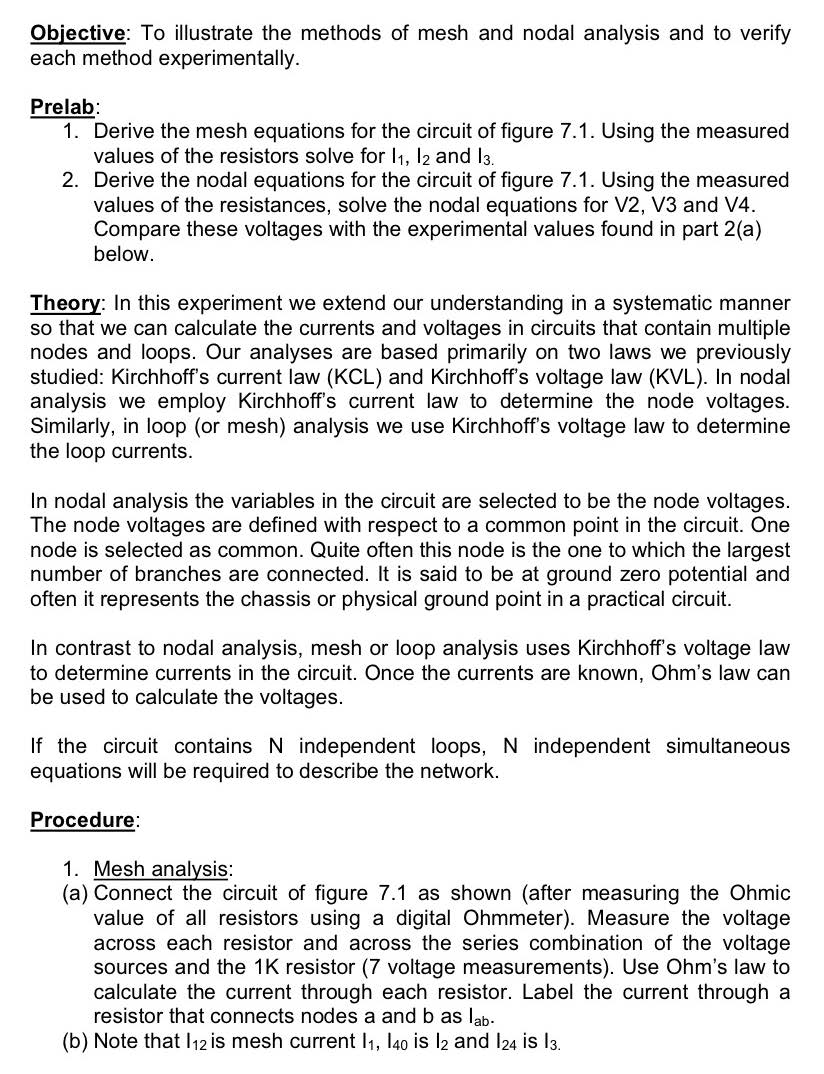 Objective: To illustrate the methods of mesh and nodal analysis and...