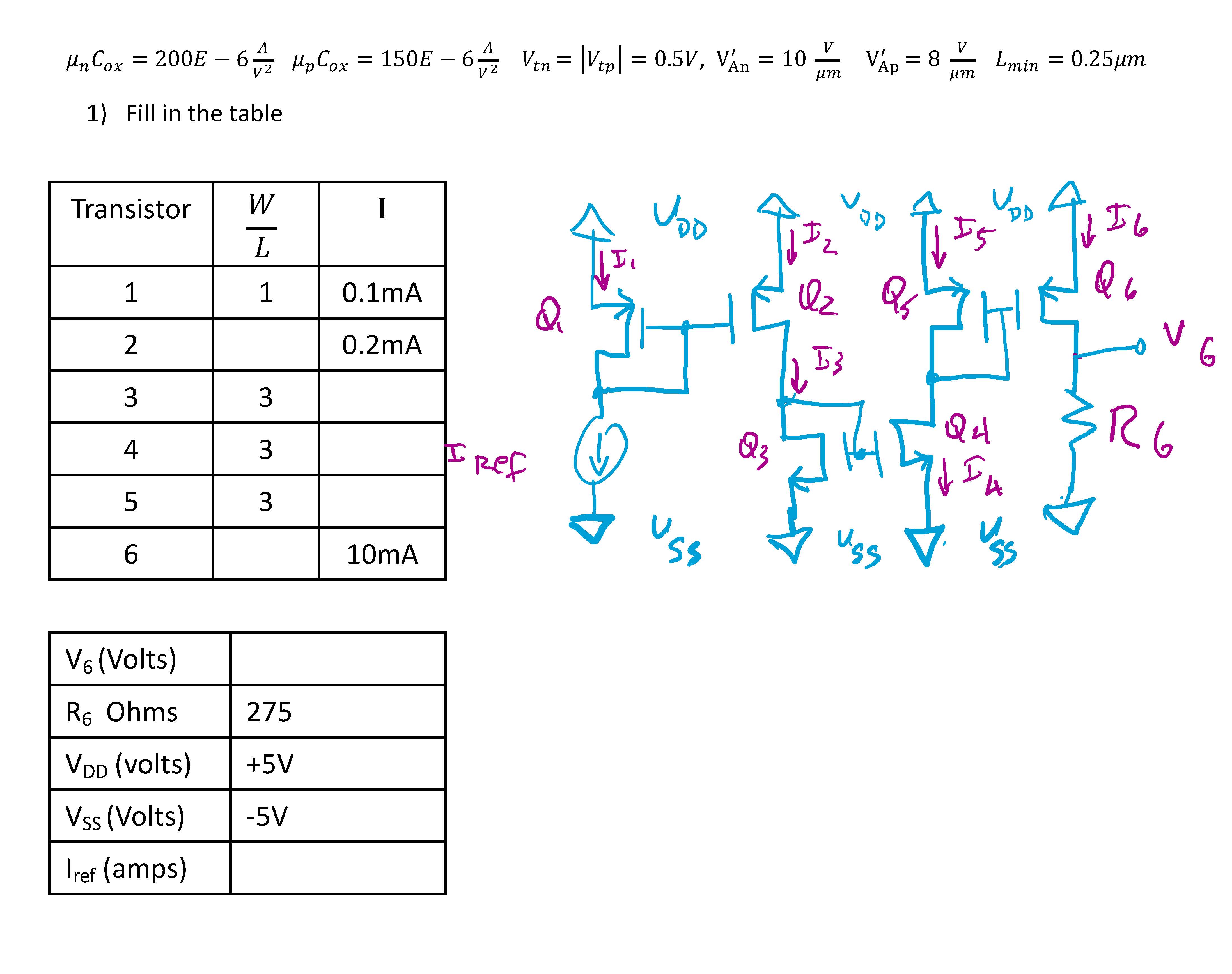 1) Fill in the table Transistor � � I 1 1 0.1mA 2 0.2mA 3...