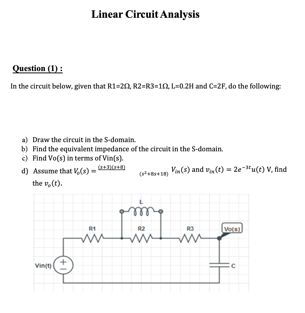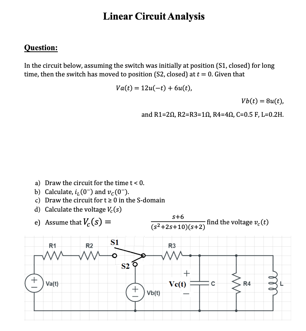 Linear Circuit Analysis Question: In the circuit below, assuming ...