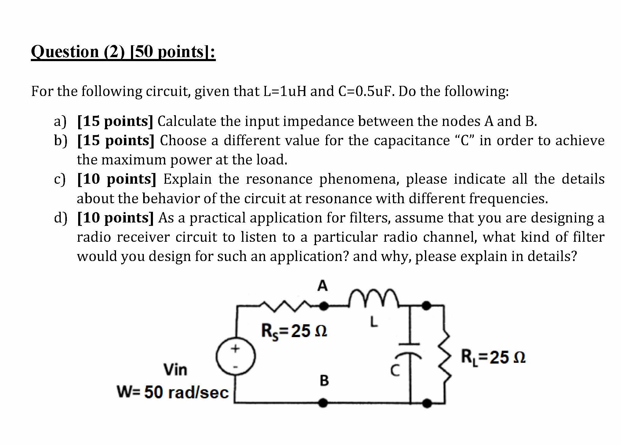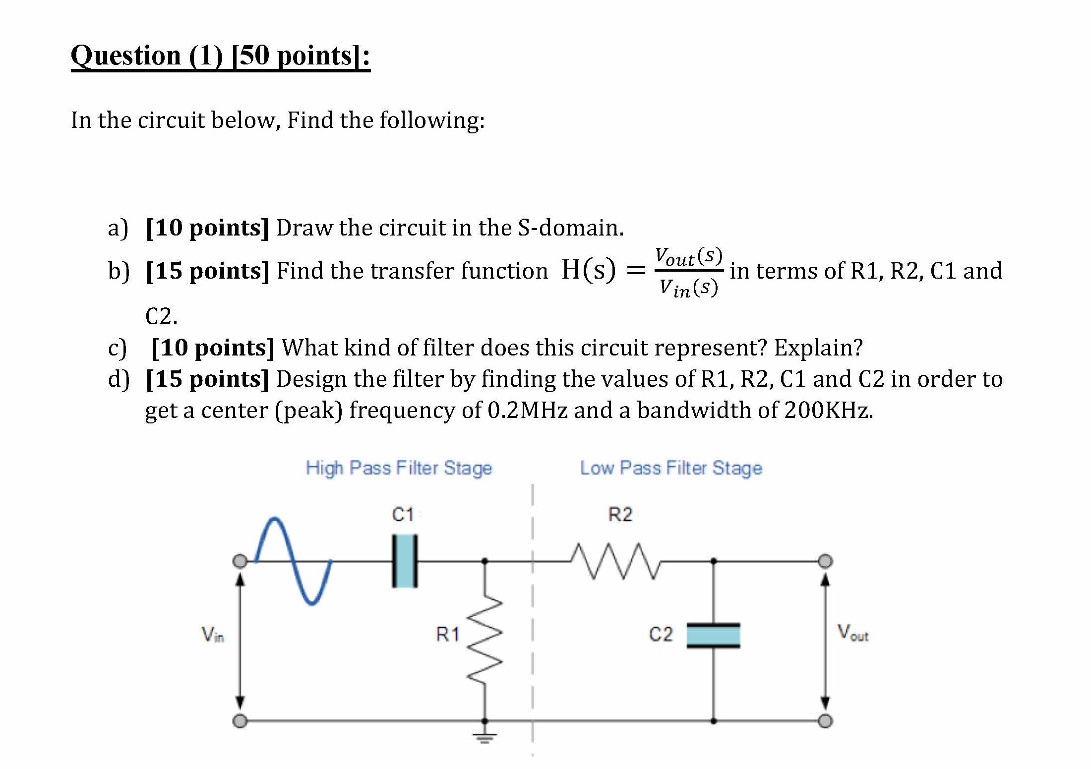 Question (1) [50 points]: In the circuit below, Find the following:...