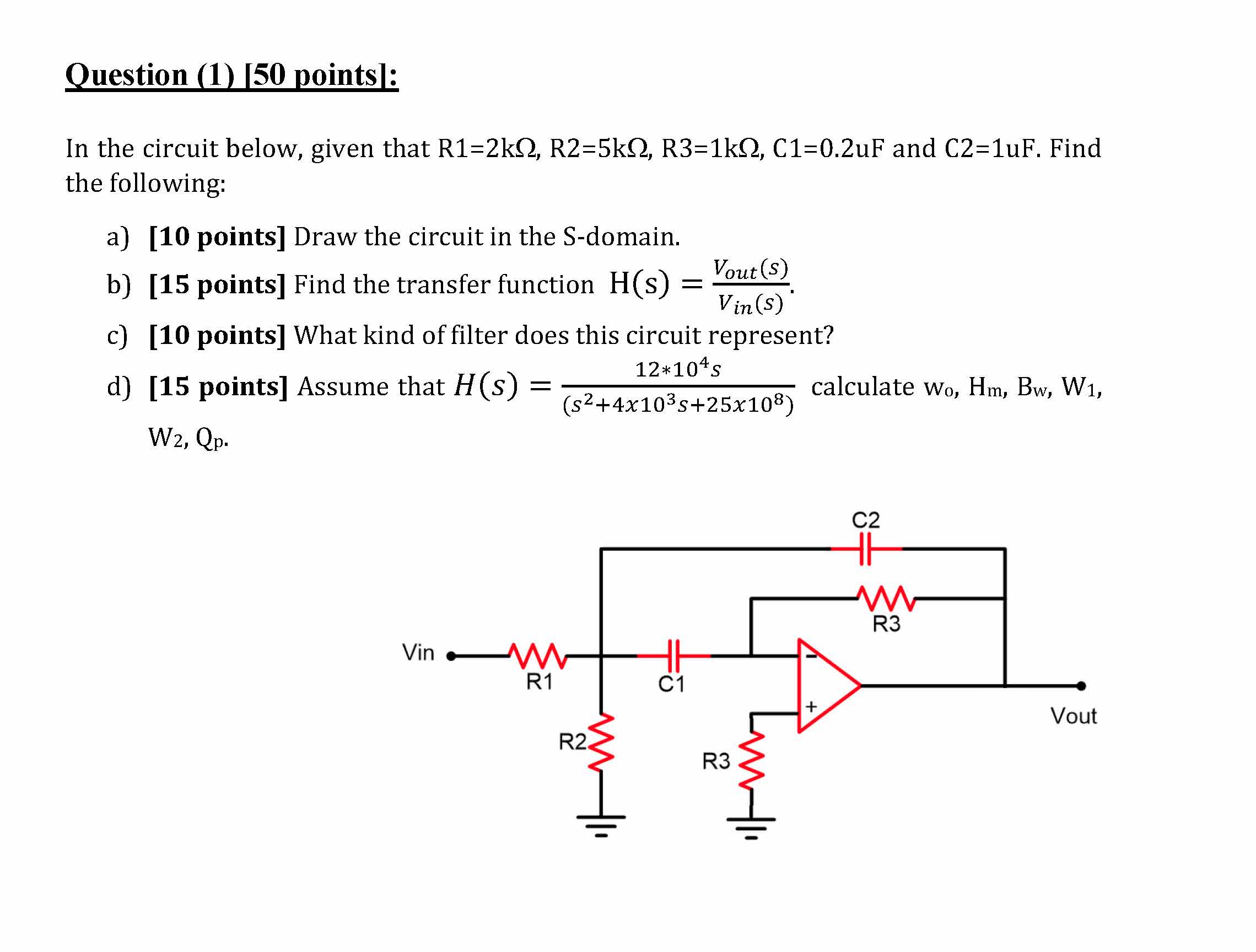 Question (1) [50 points]: In the circuit below, given that R1=2kï...