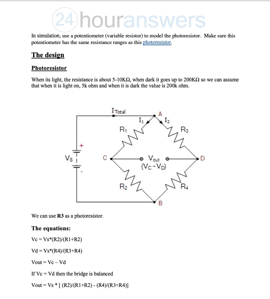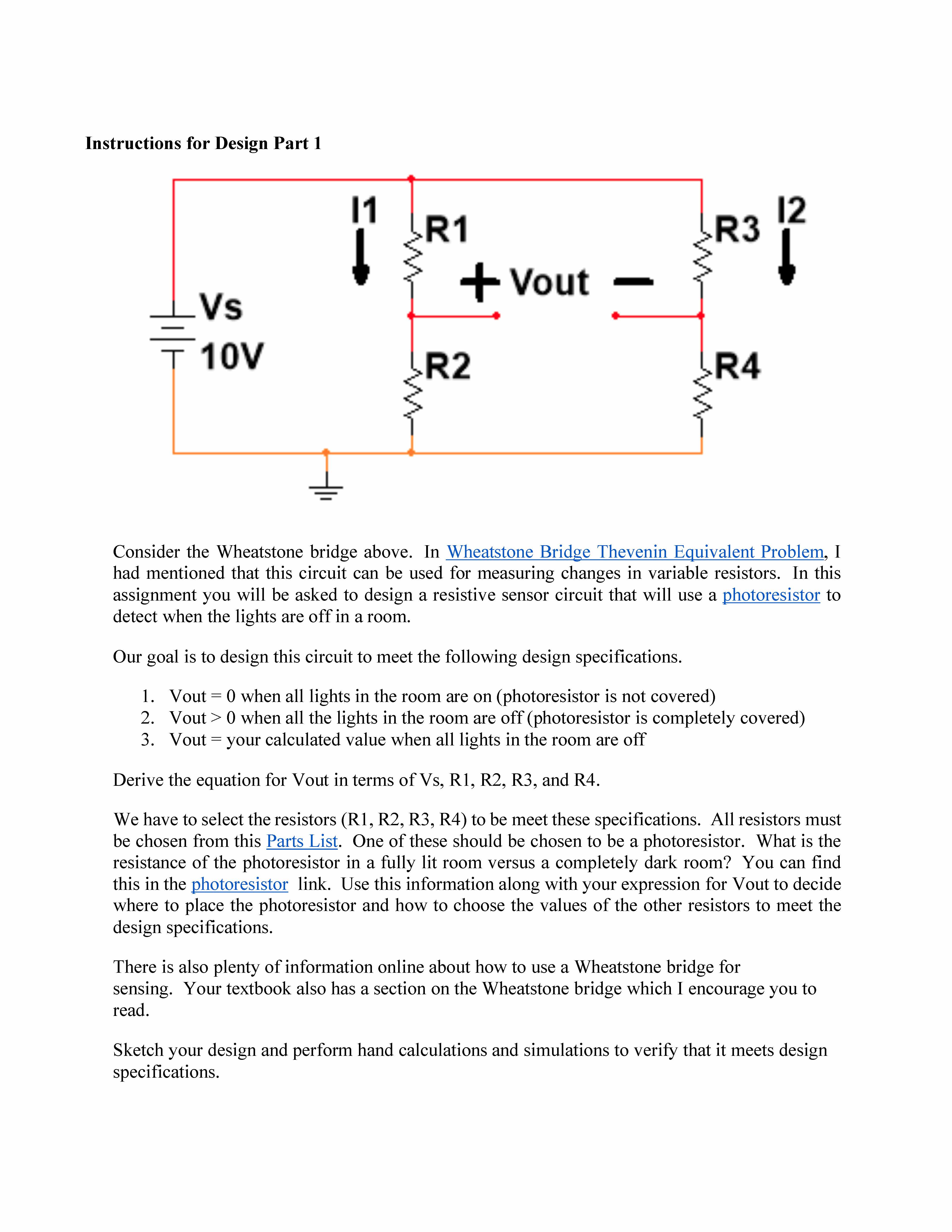 Instructions for Design Part 1 Consider the Wheatstone bridge abov...