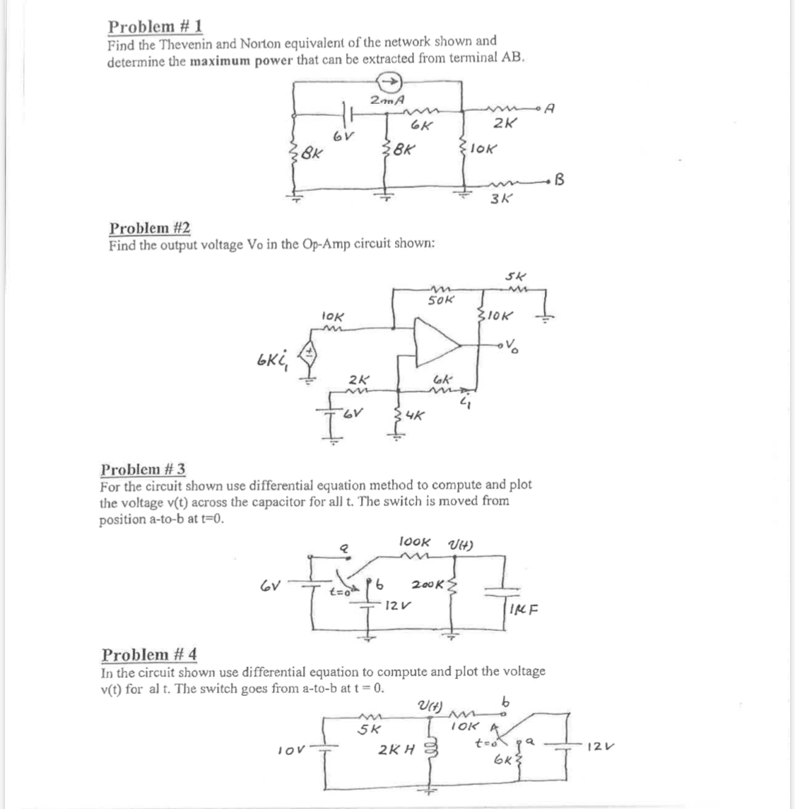 Problem # 1 Find the Thevenin and Norton equivalent of the network...