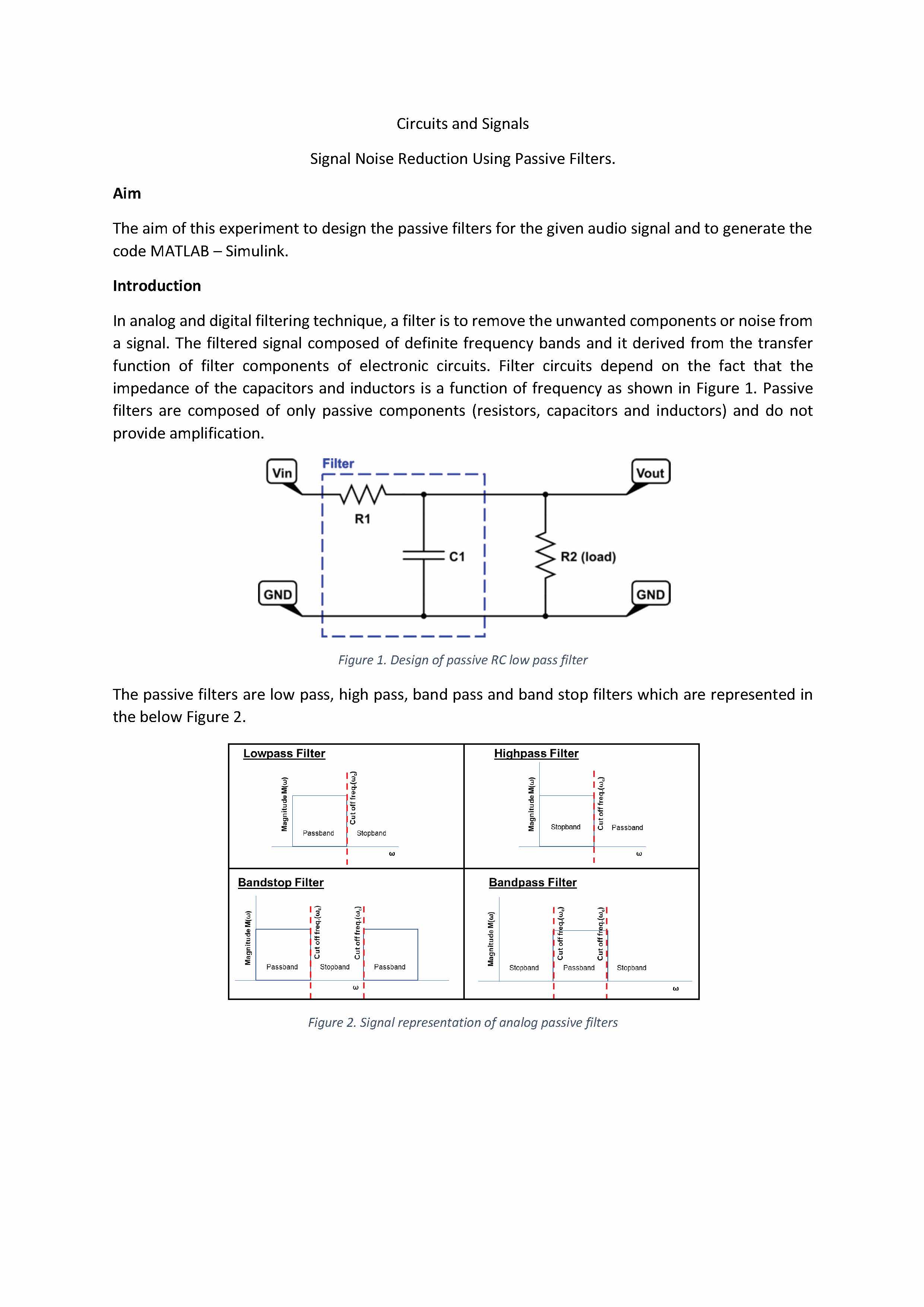Circuits and Signals Signal Noise Reduction Using Passive Filters....