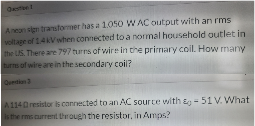 Question 1 A neon sign transformer has a 1,050 WAC output with an ...