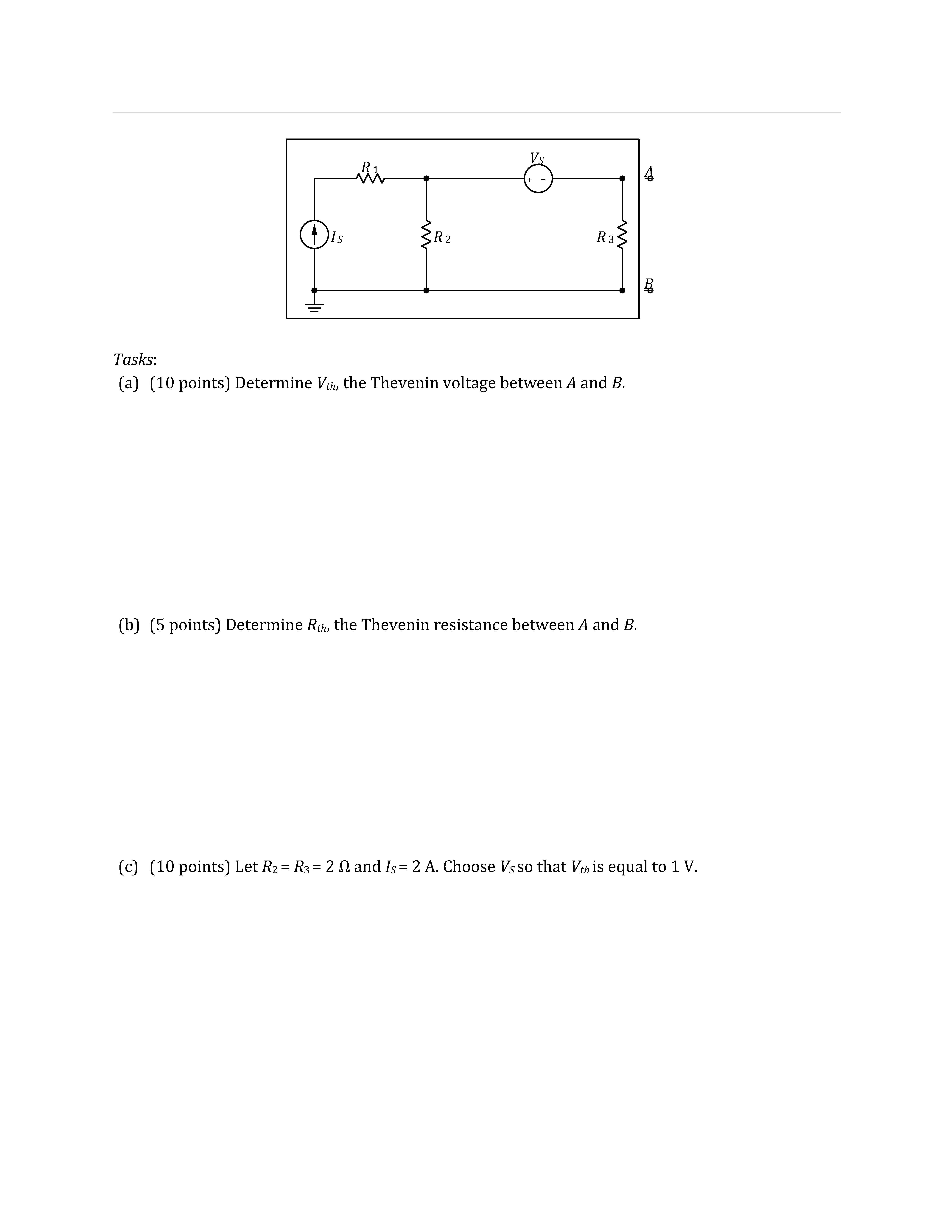 in 4 3R2 R33 4 Tasks: (a) (10 points) Decermine Thevenin volt...