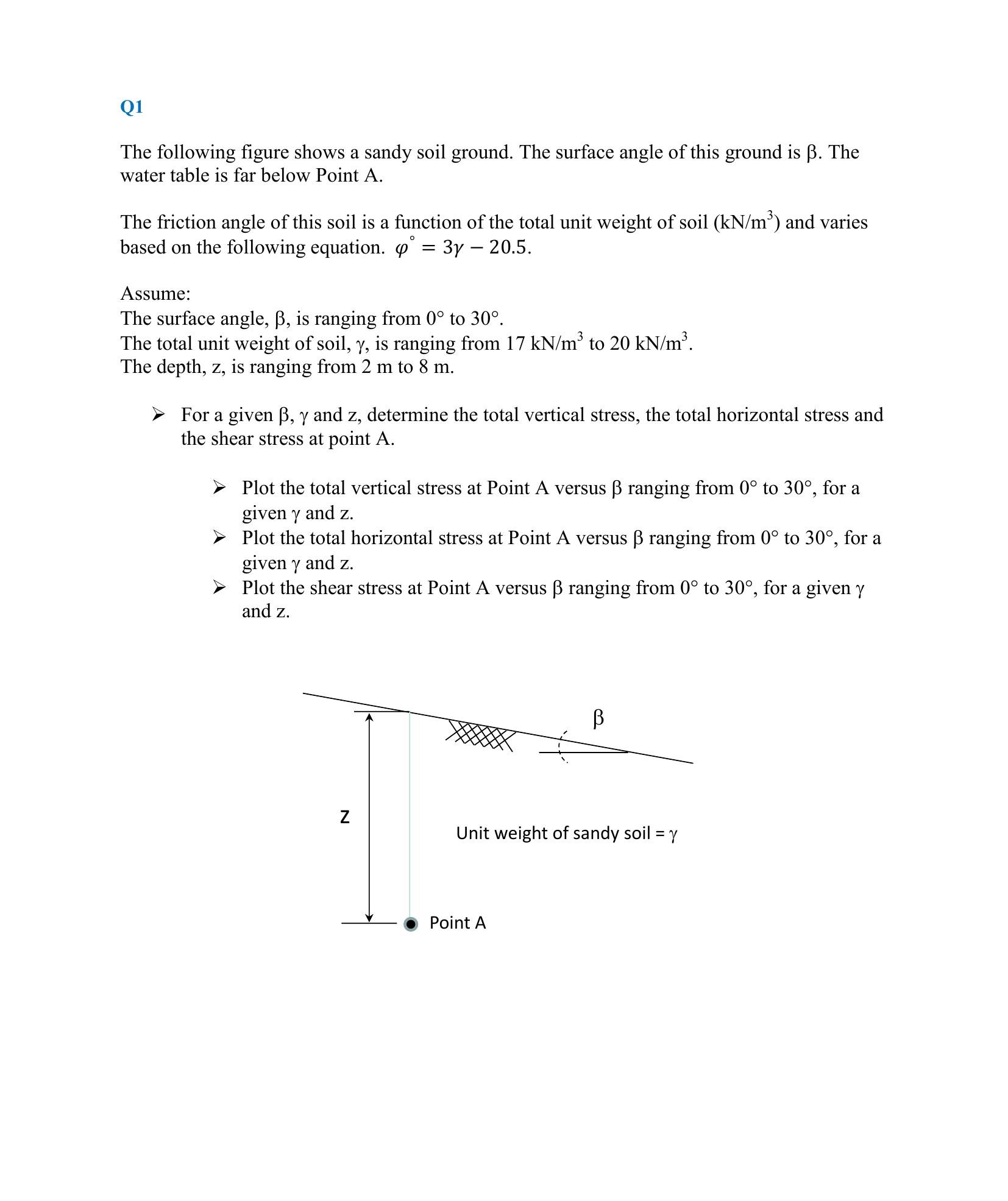 Q1 The following figure shows a sandy soil ground. The surface ang...