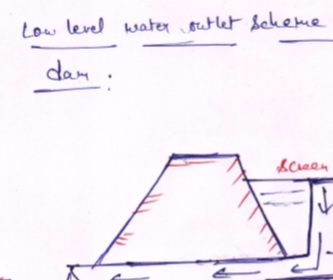 Draw a generic design for a low level water outlet for a dam.