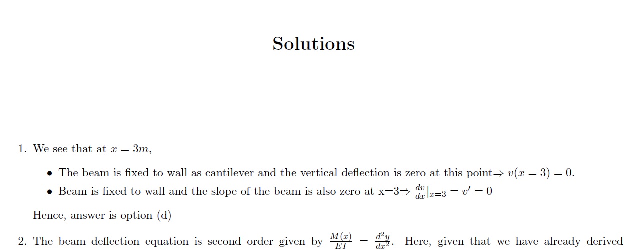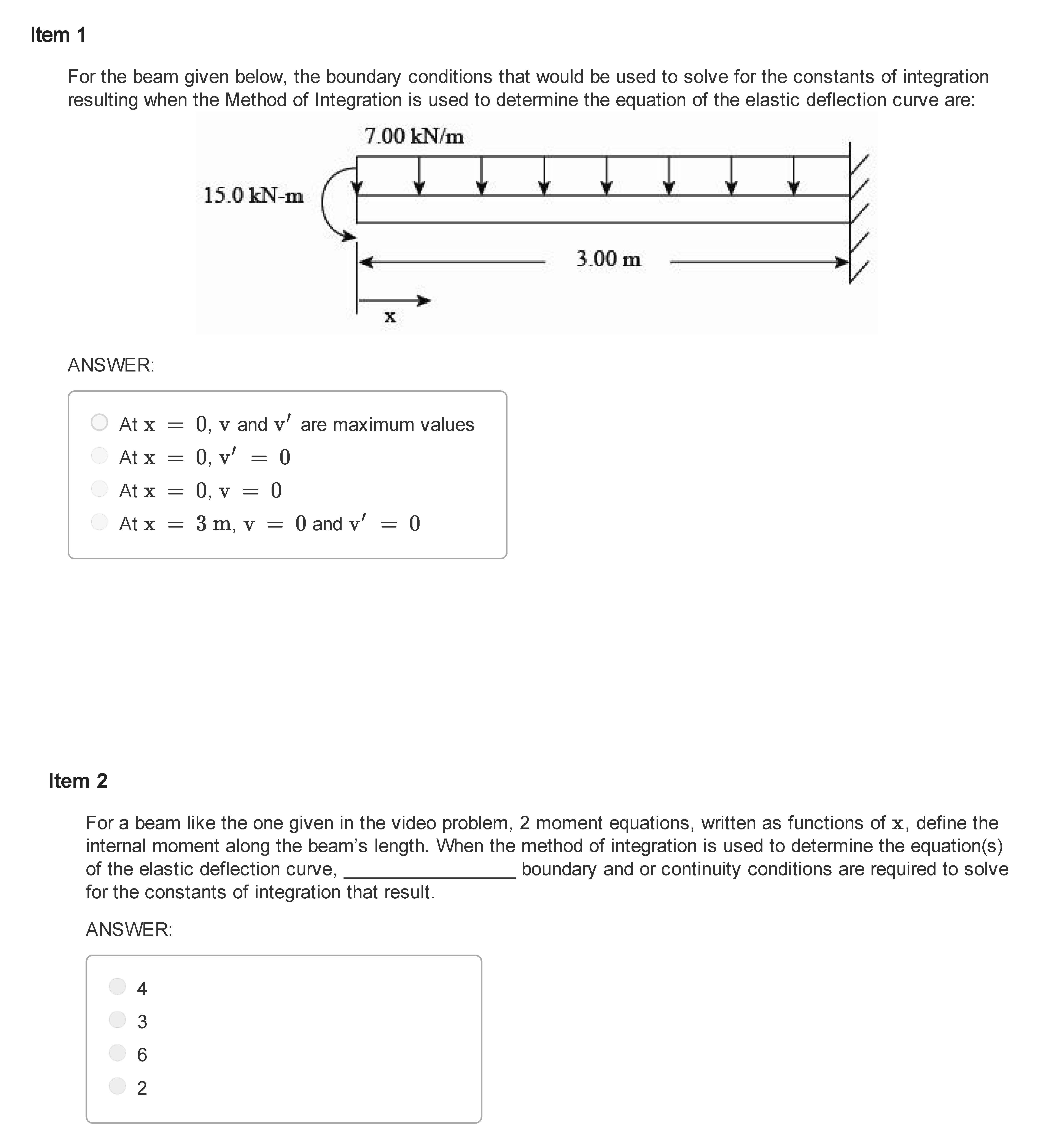 Item 1 For the beam given below, the boundary conditions that woul...