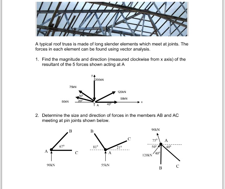 A typical roof truss is made of long slender elements which meet at...