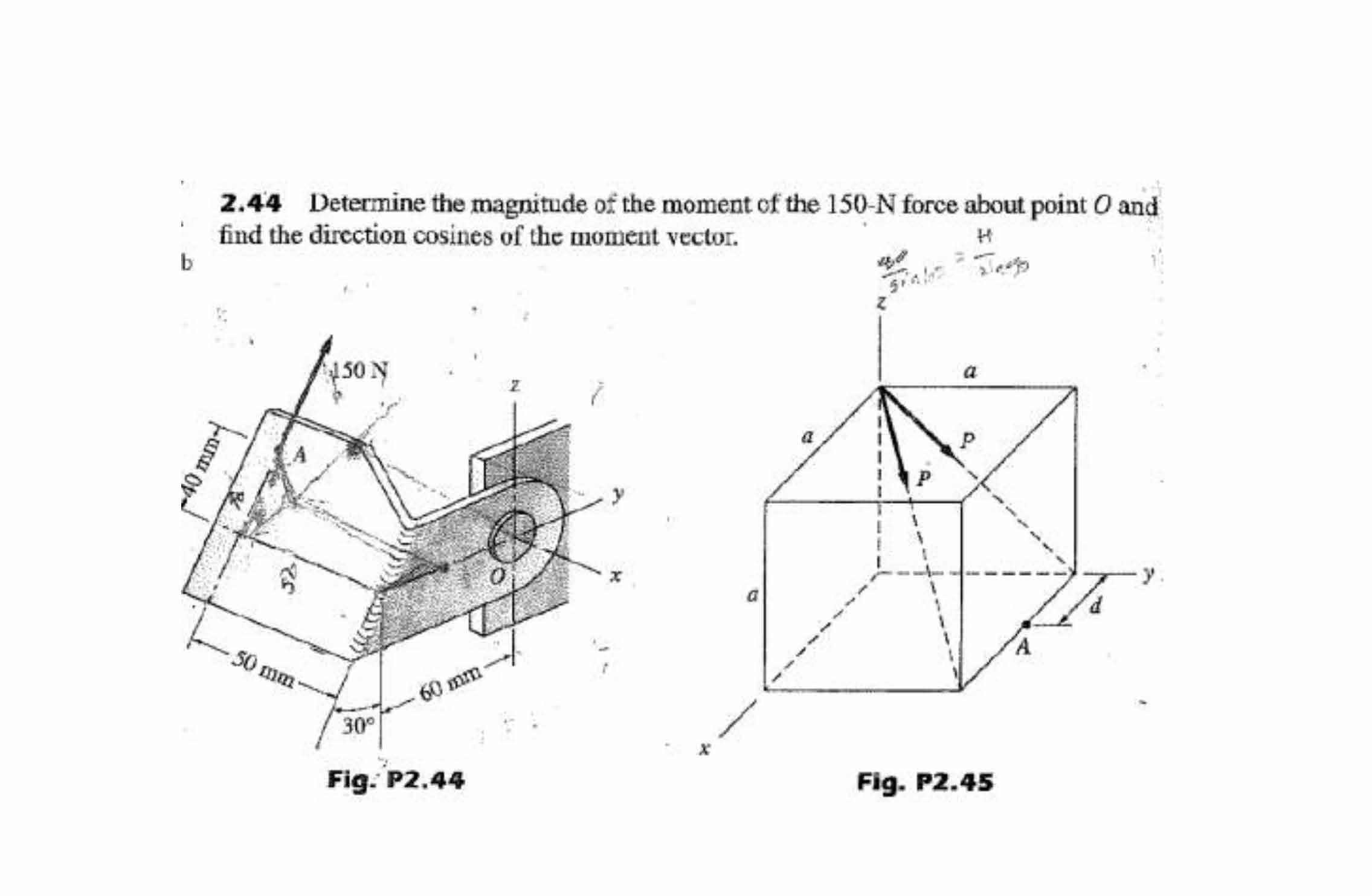 2.44 Determine the magnitude of the moment of the 150-N force about...