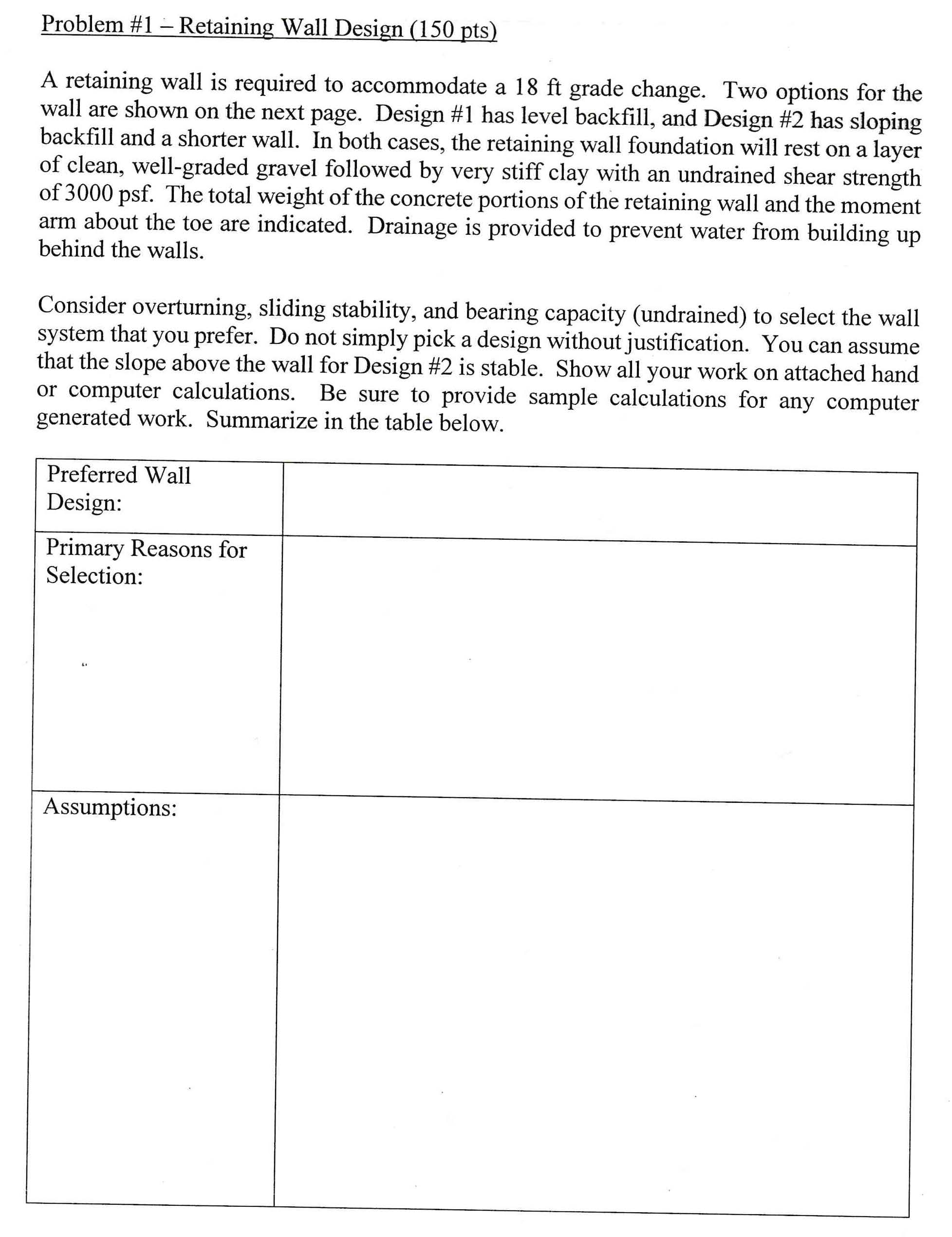 Problem #1 - Retaining Wall Design (150 pts) A retaining wall is...