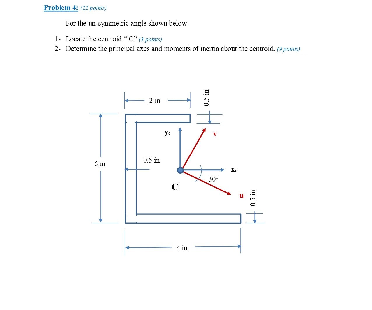 Problem 4: (22 points) For the un-symmetric angle shown below: 1-...