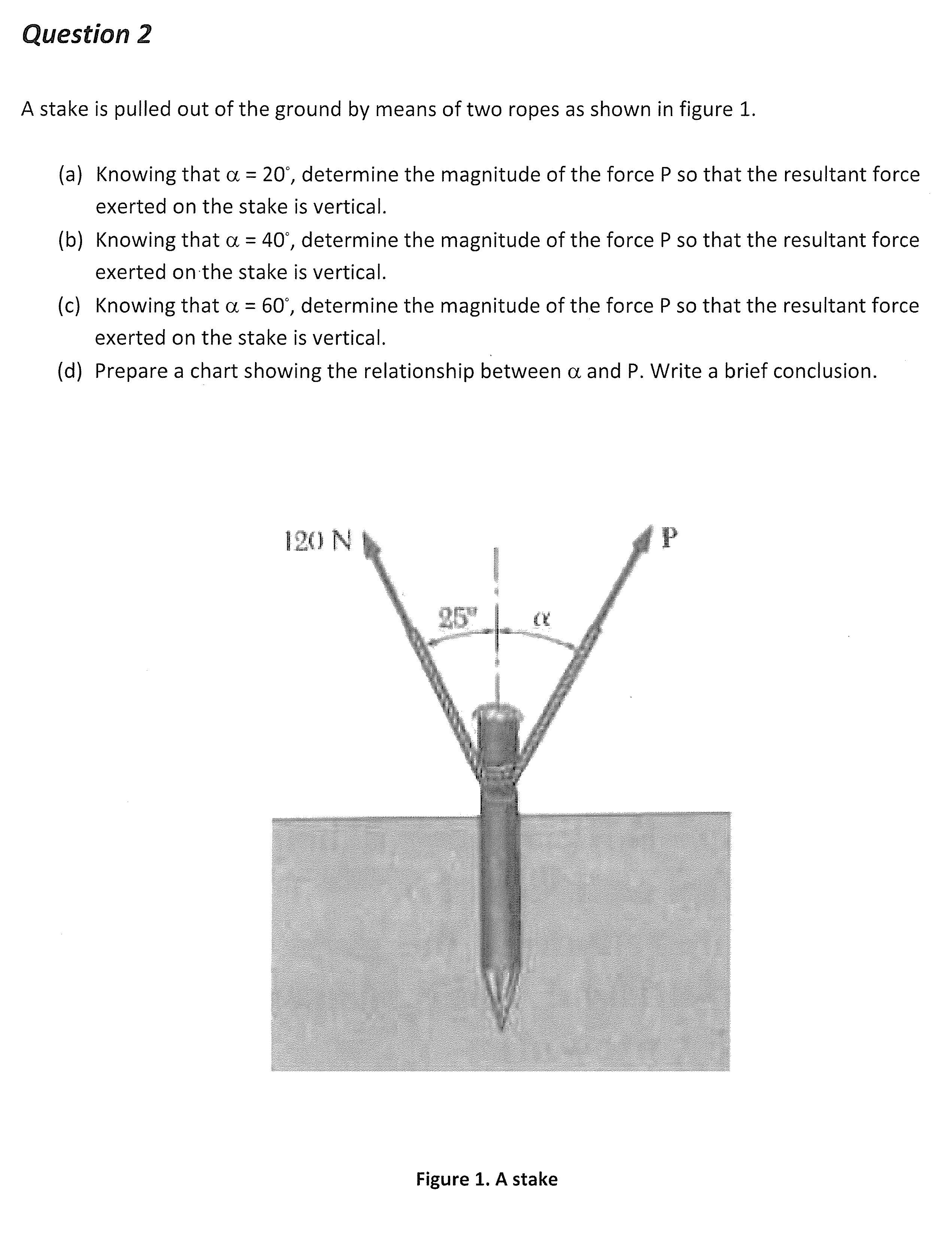Question 2 A stake is pulled out of the ground by means of two rop...