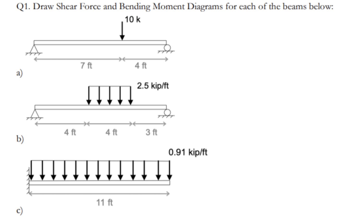 Q 1. Draw Shear Force and Bending Moment Diagrams for each of the b...