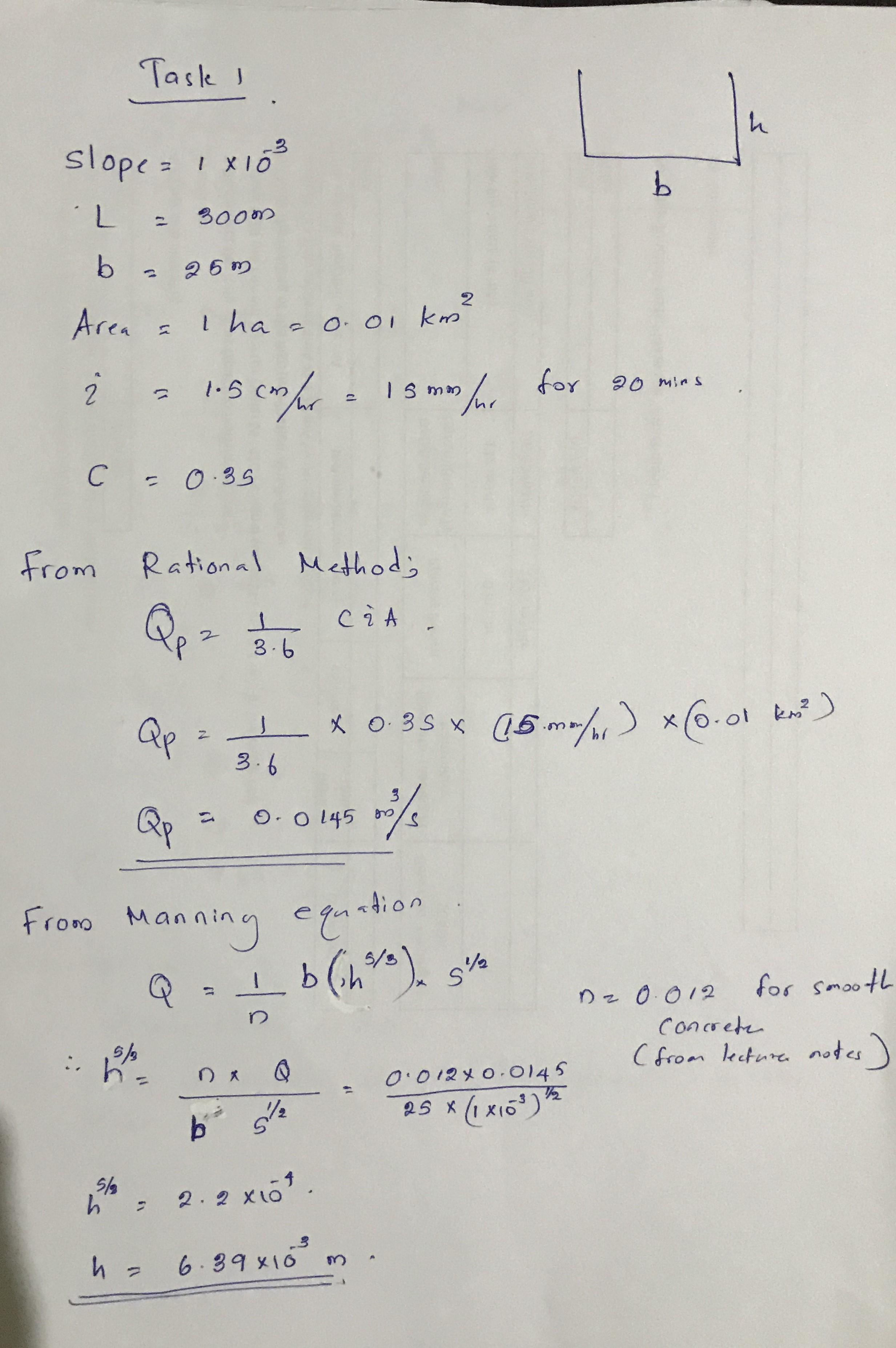 Hydrology and surface flow TASK 1 A 25 m wide rectangular storm ...