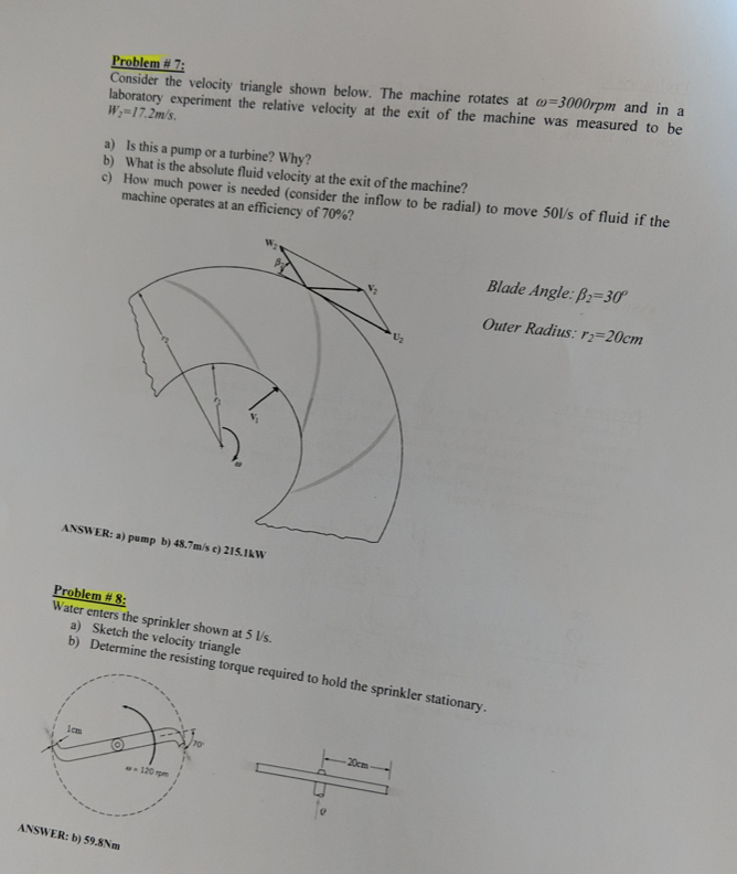 Problem #7: Consider the velocity triangle shown below. The machin...