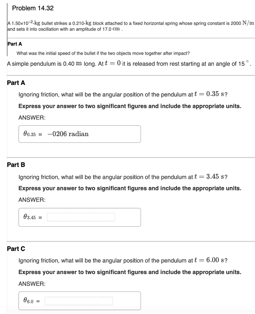 Problem 14.32 A 1.50x10-2-kg bullet strikes a 0.210-kg block attac...