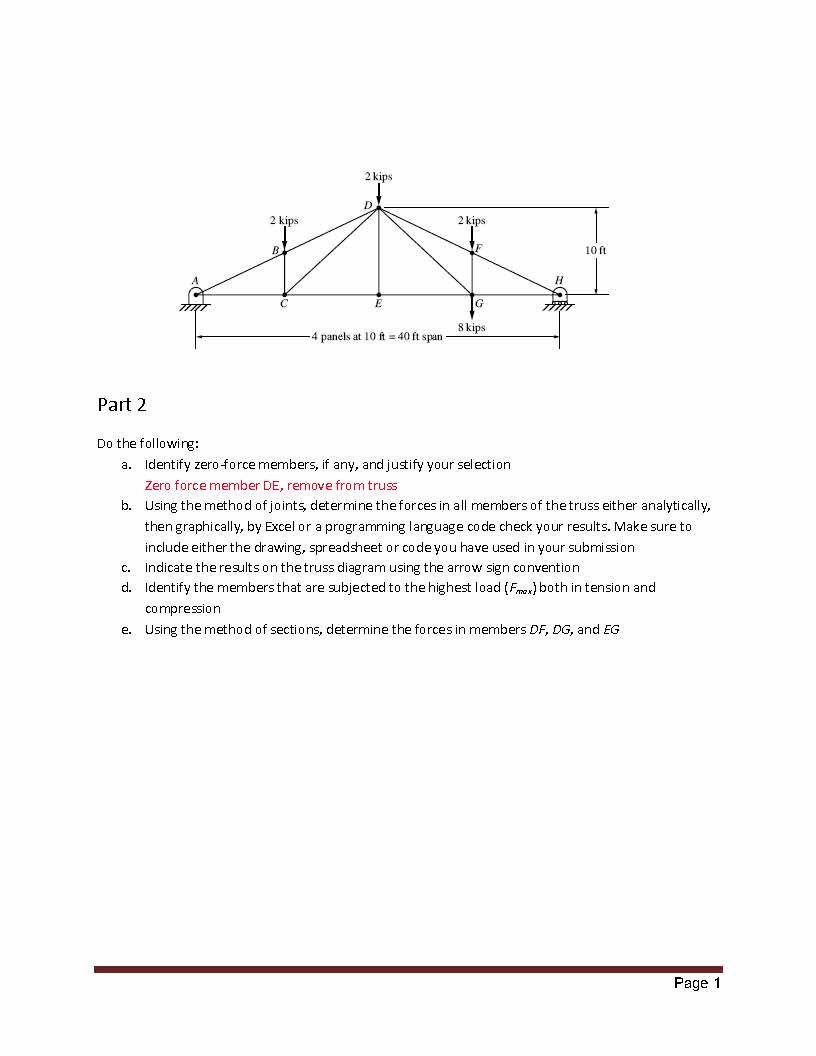 Part 2 Do the following: a. Identify zero-force members, if any,...