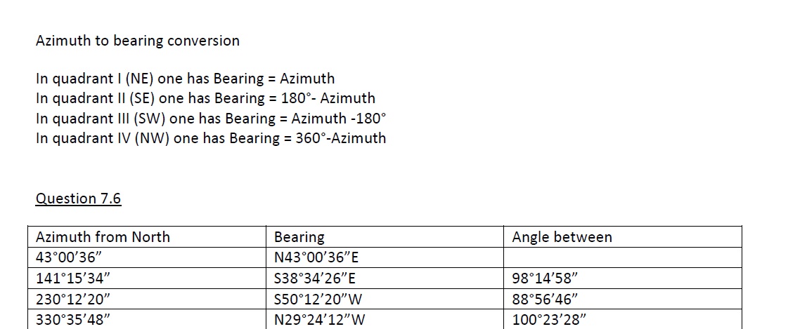 In Problem 7.6, convert the azimuths from north to bearings, and co...