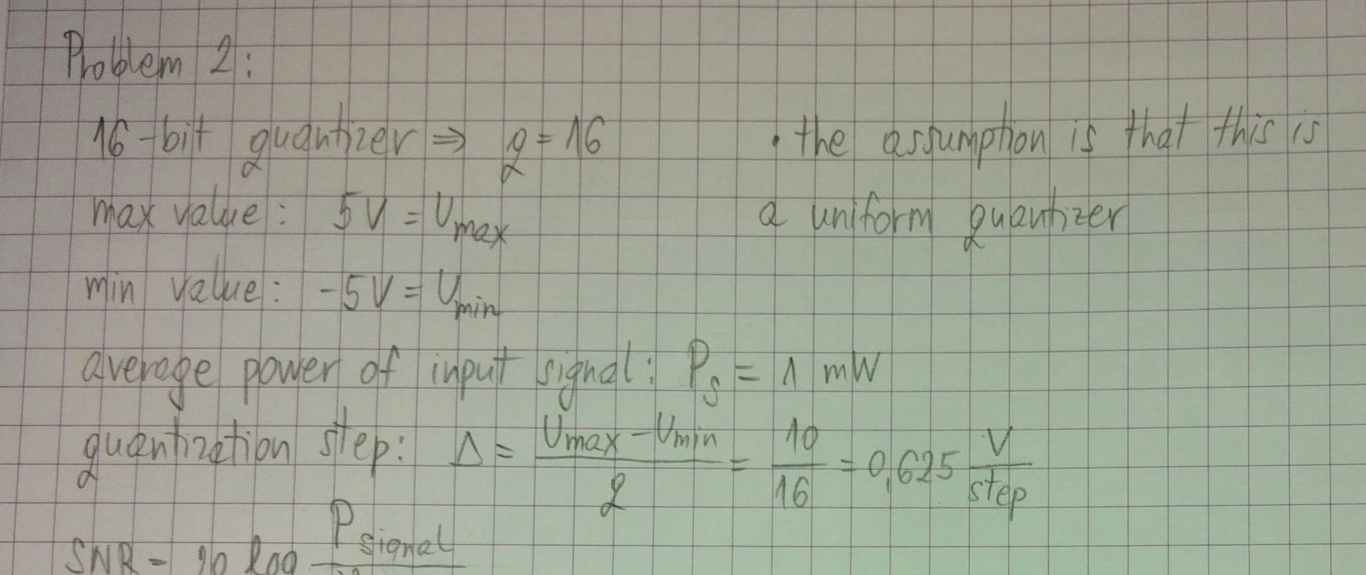 Problem 2: Find the signal-to-noise ratio of a 16-bit quantizer in...