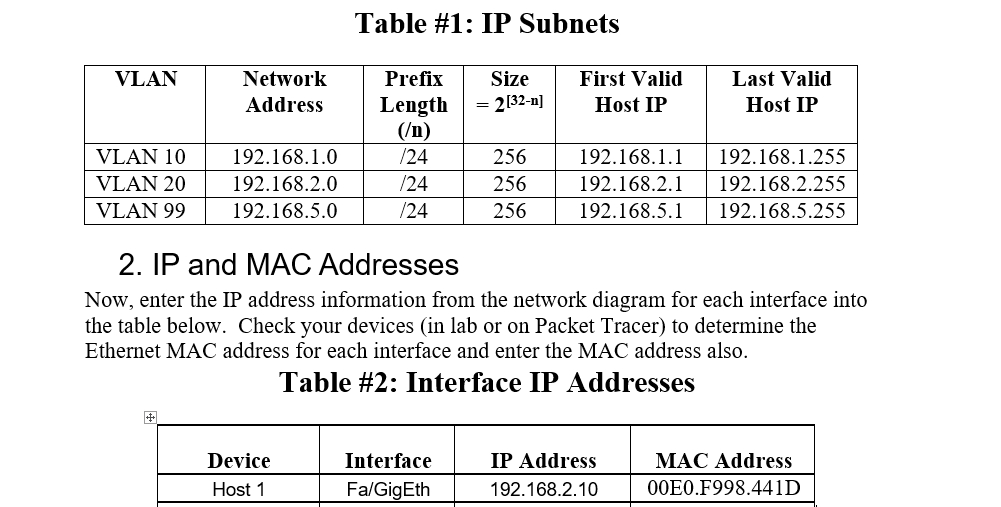 1. IP Subnets In the table below, type the network address, prefix...